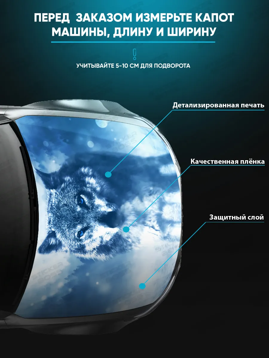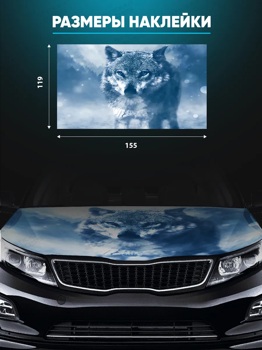 Представляем большую наклейку на капот с изображением волков, которая станет идеальным акцентом для вашего автомобиля