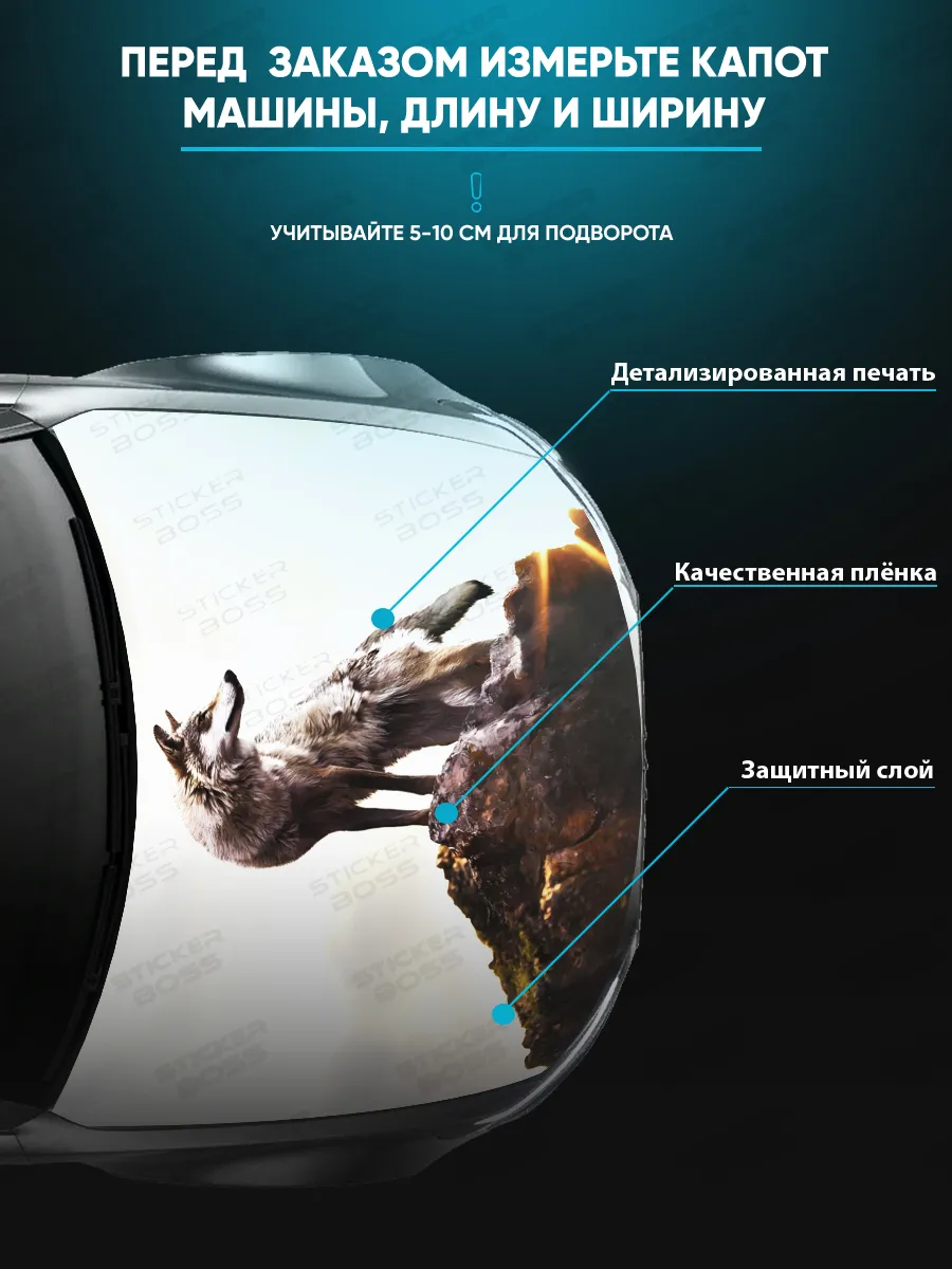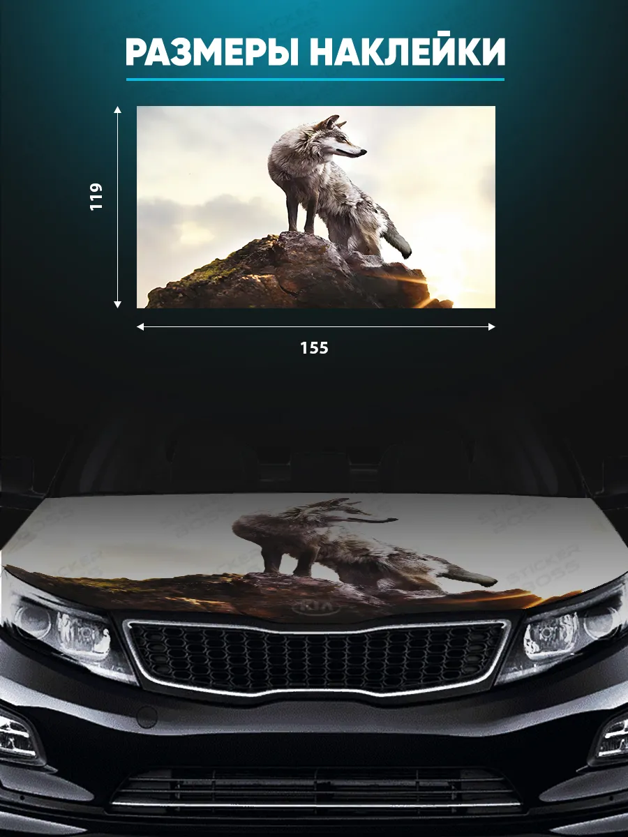Представляем большую наклейку на капот с изображением волков, которая станет идеальным акцентом для вашего автомобиля