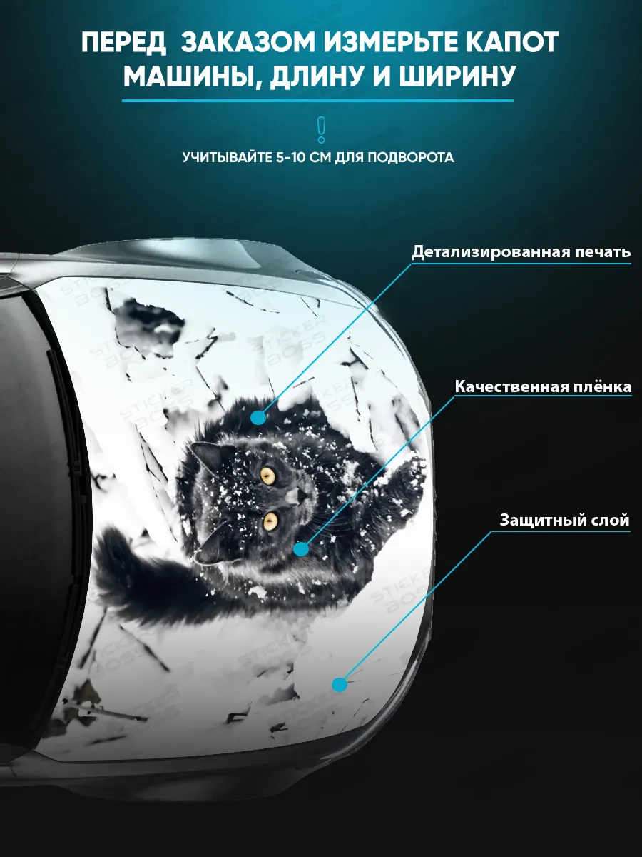 Представляем большую наклейку на капот с изображением милых котов, которая станет идеальным акцентом для вашего автомобиля
