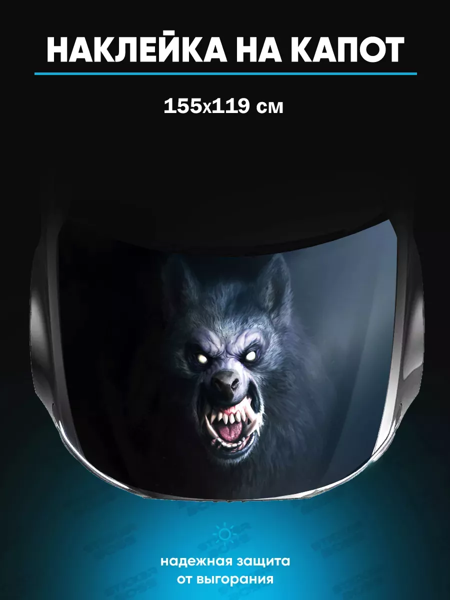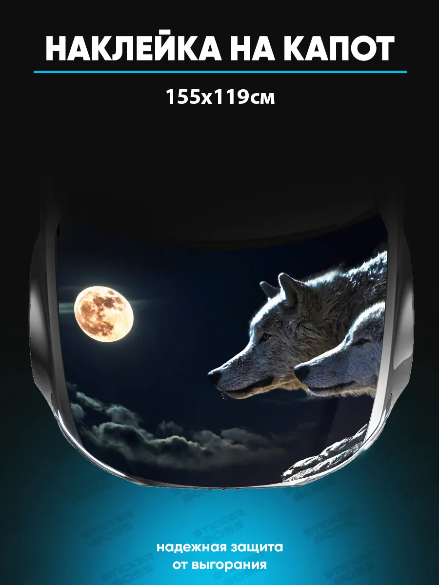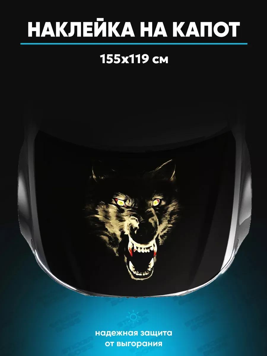 Представляем большую наклейку на капот с изображением волков, которая станет идеальным акцентом для вашего автомобиля