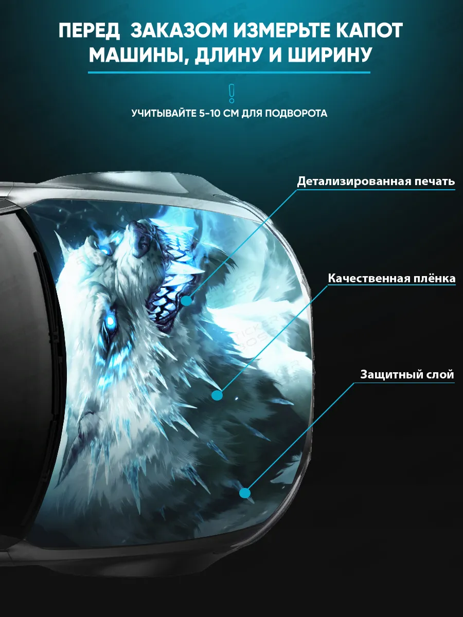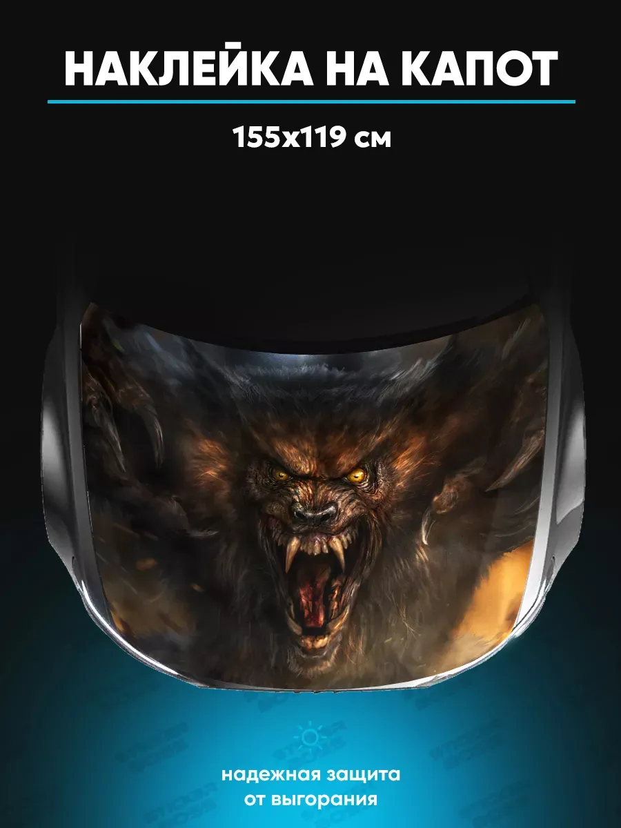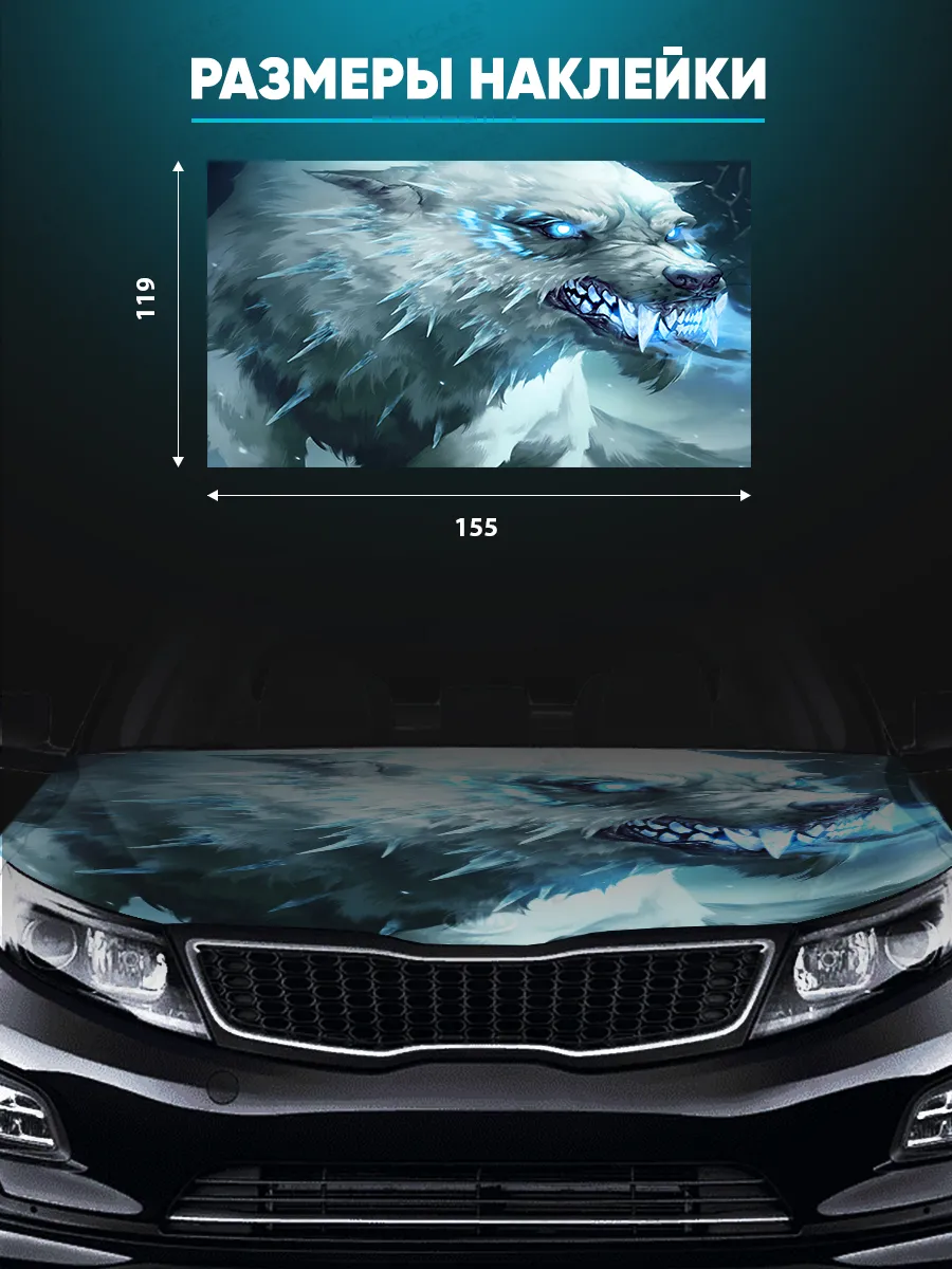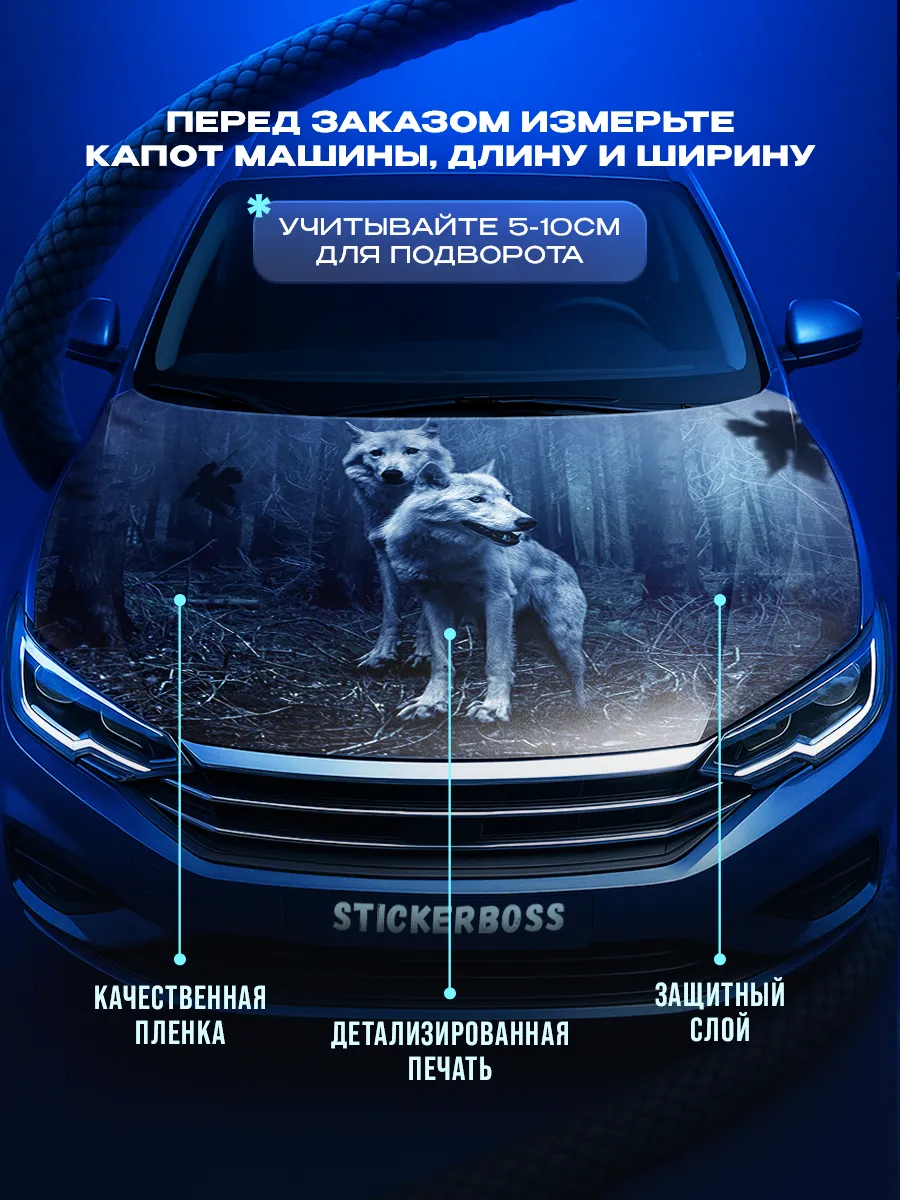 Представляем большую наклейку на капот с изображением волков, которая станет идеальным акцентом для вашего автомобиля