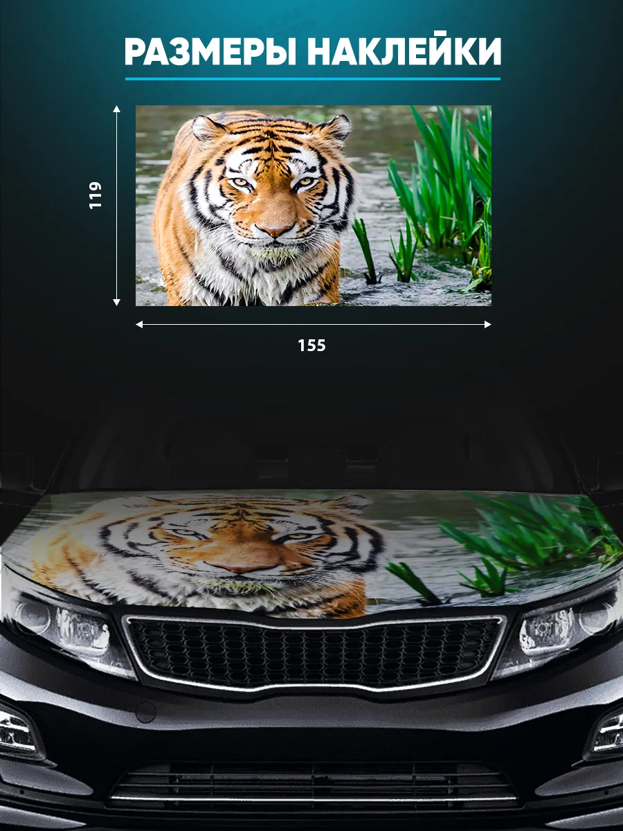 Эта наклейка на капот придаёт автомобилю стиль и индивидуальность, защищая поверхность и не мешая ежедневной эксплуатации. Размер 155х119 см охватывает большую часть капота, а разнообразие дизайнов позволяет выбрать подходящий стиль, включая мотивы с тиграми и другими животными.