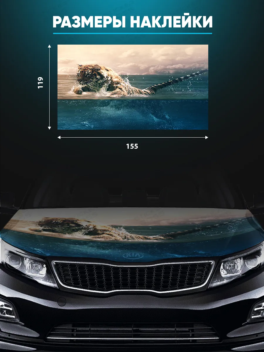 Эта наклейка позволяет придать автомобилю индивидуальный внешний вид и подчеркнуть стиль водителя. Размер 155х119 см делает её заметной на капоте большинства автомобилей, включая седаны, хэтчбек и универсал. При необходимости можно подрезать лист под нужный размер. Наклейка изготовлена на высококачественной самоклеящейся виниловой пленке ПВХ с верхним слоем ламинации, который защищает цвет и повышает устойчивость к влаге и солнечным лучам. Она легко снимается без следов клея.