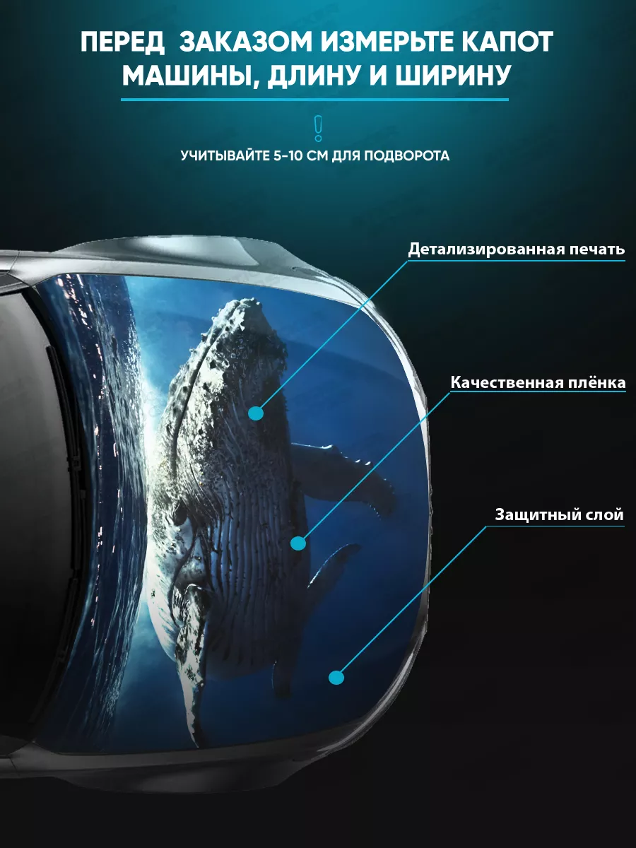 Эта наклейка на капот придает автомобилю яркий акцент и индивидуальность. Изготовлена из прочной ПВХ самоклеящейся пленки, которая обеспечивает надёжное прилипание к поверхности и стойкость к влаге, мытью и неблагоприятным условиям. Верхний ламинационный слой защищает изображение от ультрафиолета и выцветания на солнце. Универсальный размер 155х119 см делает наклейку пригодной для большинства седанов, хэтчбеков и универсалов, и при необходимости лист можно подрезать по контуру капота.