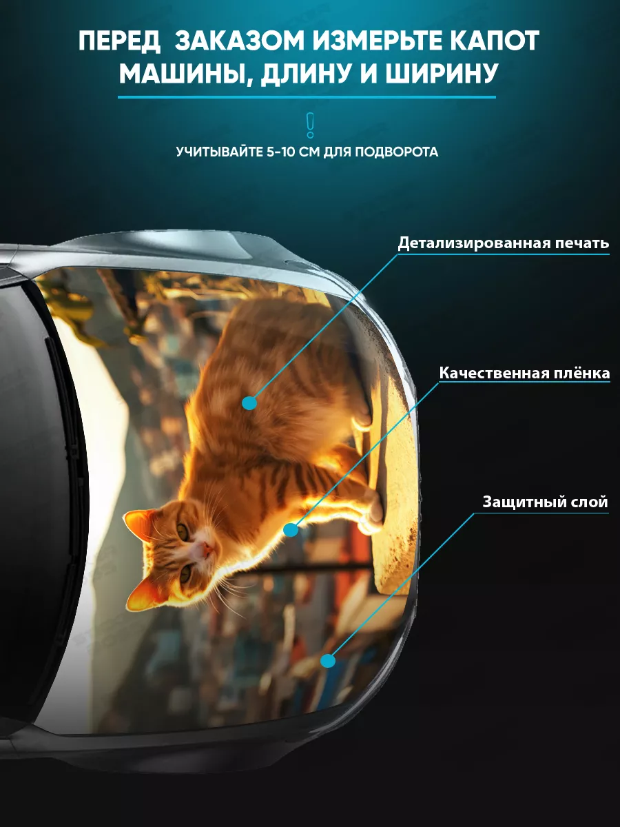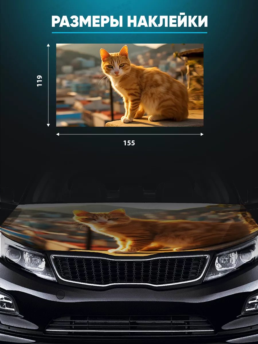Представляем большую наклейку на капот с изображением милых котов, которая станет идеальным акцентом для вашего автомобиля