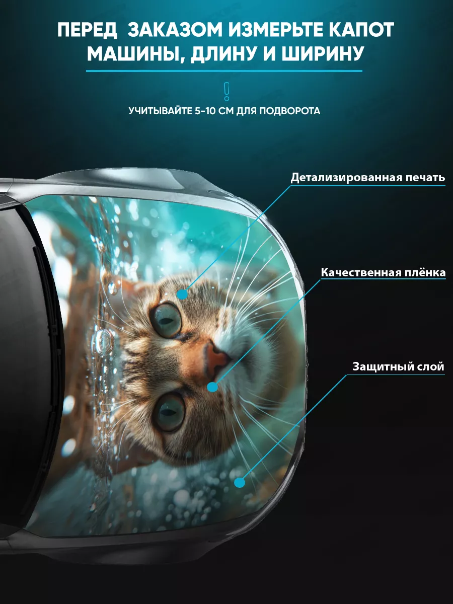 Представляем большую наклейку на капот с изображением милых котов, которая станет идеальным акцентом для вашего автомобиля