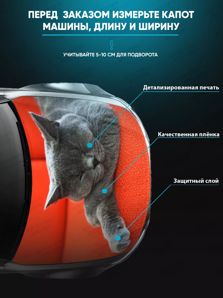 Представляем большую наклейку на капот с изображением милых котов, которая станет идеальным акцентом для вашего автомобиля