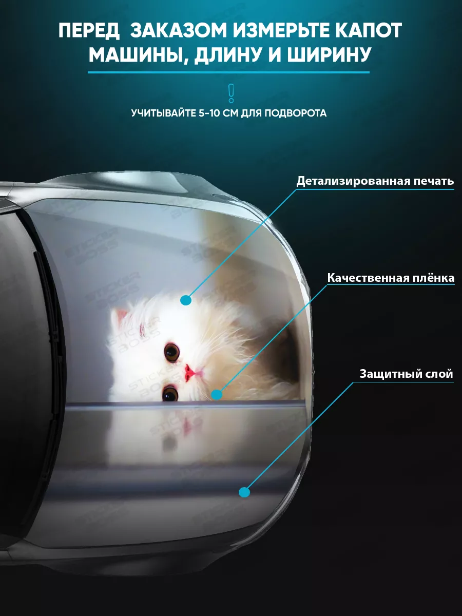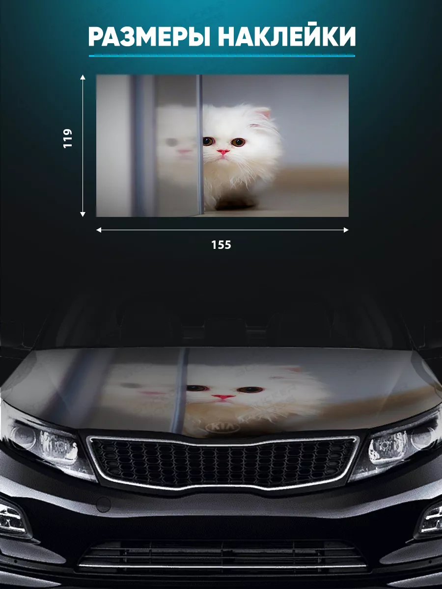 Представляем большую наклейку на капот с изображением милых котов, которая станет идеальным акцентом для вашего автомобиля