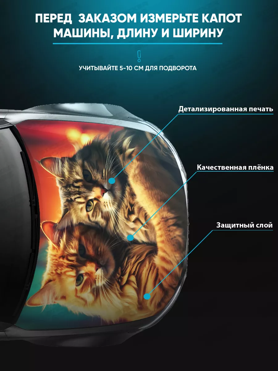 Представляем большую наклейку на капот с изображением милых котов, которая станет идеальным акцентом для вашего автомобиля