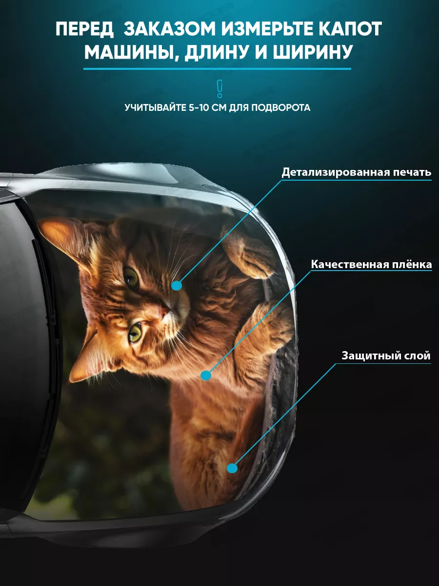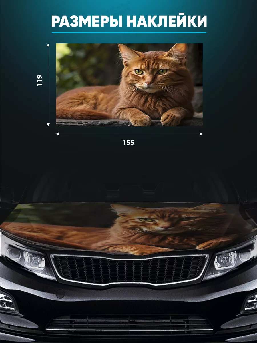 Представляем большую наклейку на капот с изображением милых котов, которая станет идеальным акцентом для вашего автомобиля