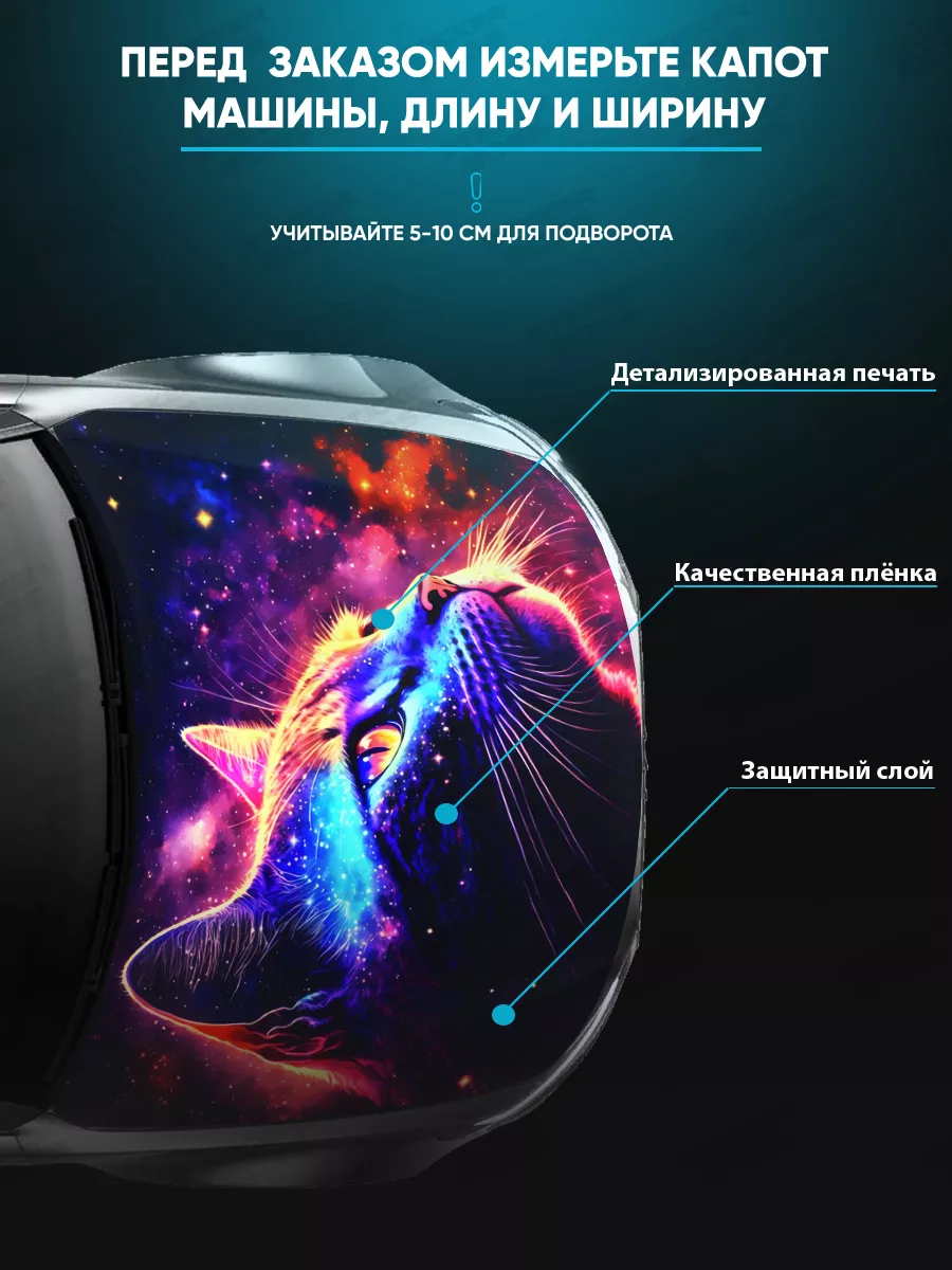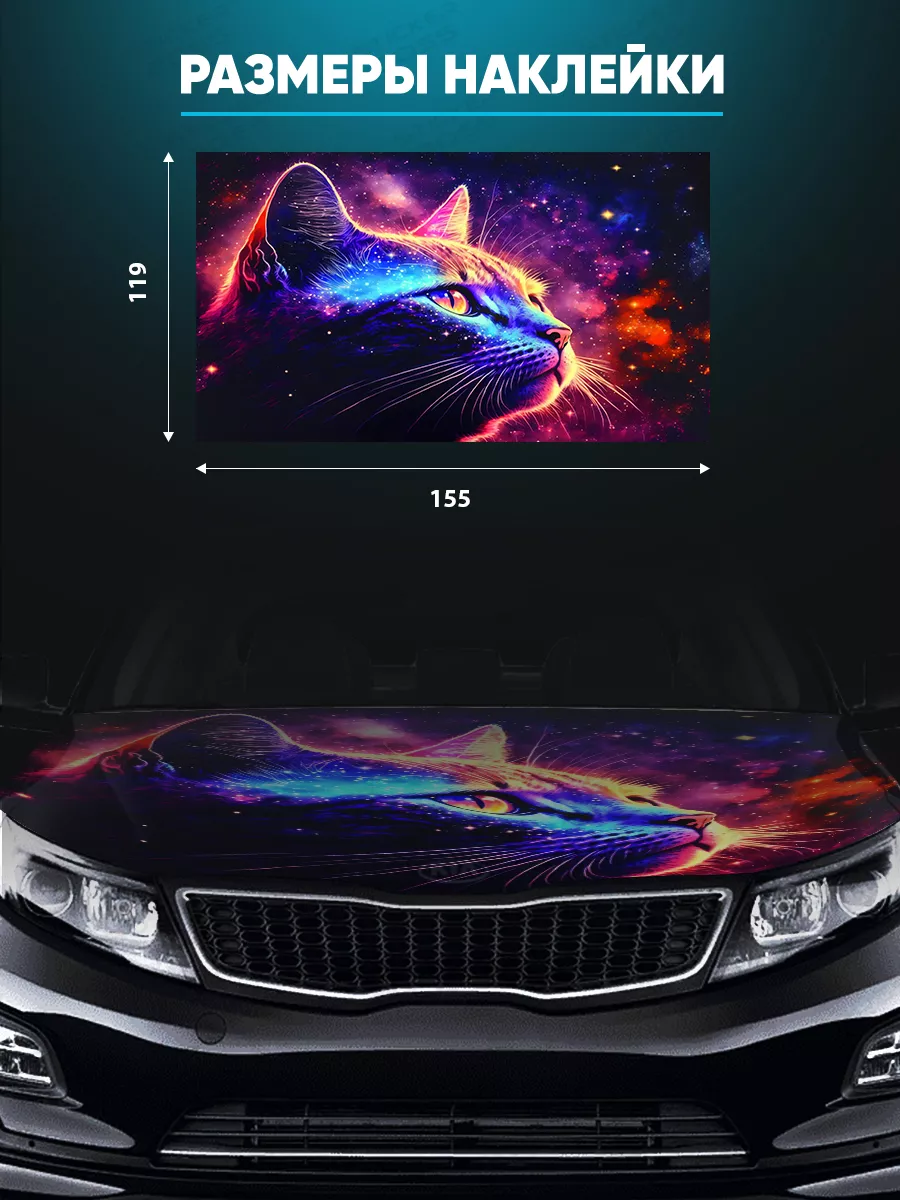 Эта наклейка на капот обеспечивает стиль и индивидуальность автомобиля, сохраняя при этом поверхность защищенной виниловой пленкой. Большой формат 155х119 см делает изображение заметным на любом автомобиле.