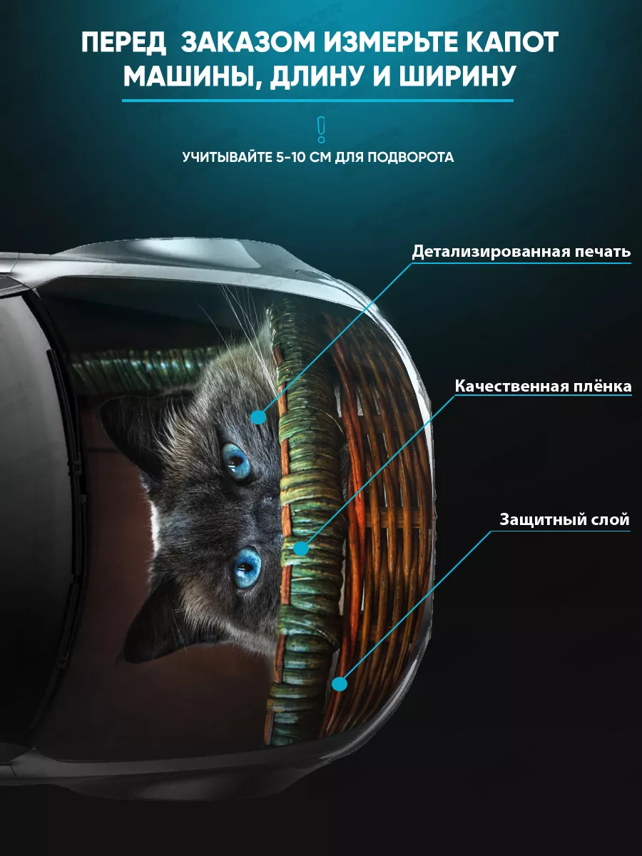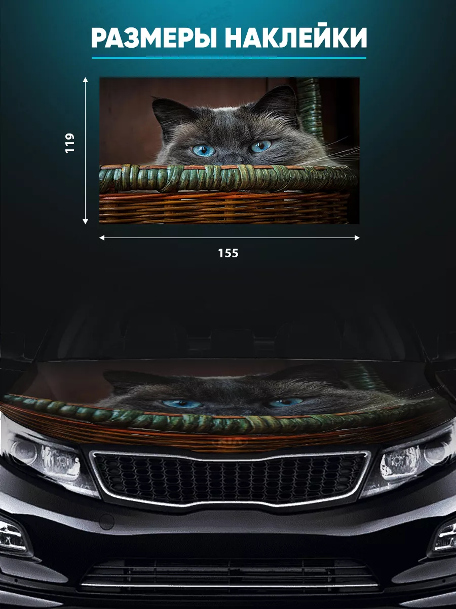 Представляем большую наклейку на капот с изображением милых котов, которая станет идеальным акцентом для вашего автомобиля