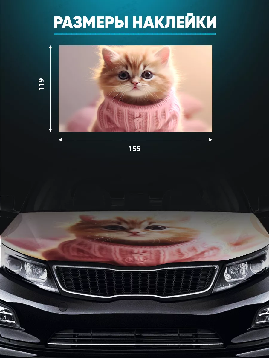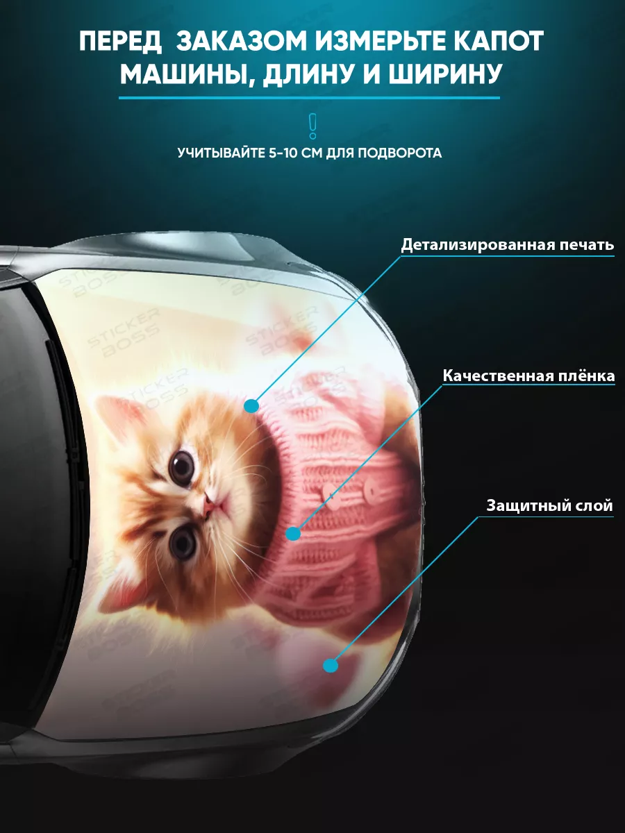 Представляем большую наклейку на капот с изображением милых котов, которая станет идеальным акцентом для вашего автомобиля