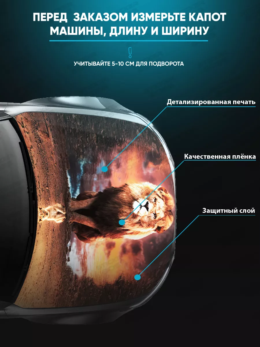Большая наклейка на капот 155х119 см украшает внешний вид автомобиля и позволяет подчеркнуть индивидуальность. Наклейка изготовлена на самоклеящейся виниловой пленке ПВХ Oracal и рассчитана на длительную службу в любых условиях. В ассортименте Stickerboss доступны варианты с животными, флагами, пейзажами и аниме — можно подобрать решение под любой стиль. При необходимости лист можно подрезать под нужный размер. Товар упаковывается в защитную тубу, что обеспечивает сохранность во время доставки.