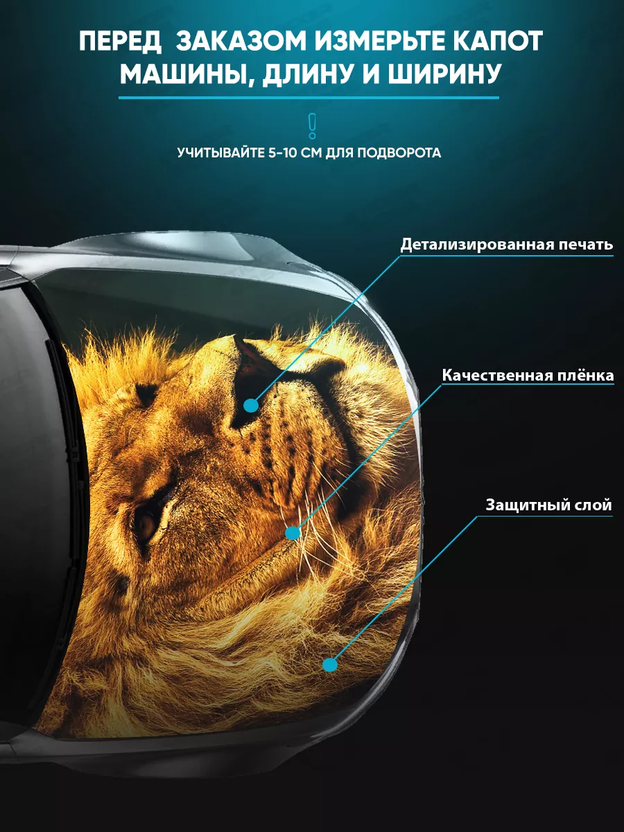 Эта большая декоративная наклейка на капот добавит автомобилю индивидуальности и стиля. Размер 155х119 см позволяет охватить большую площадь поверхности и подходит для большинства кузовов.