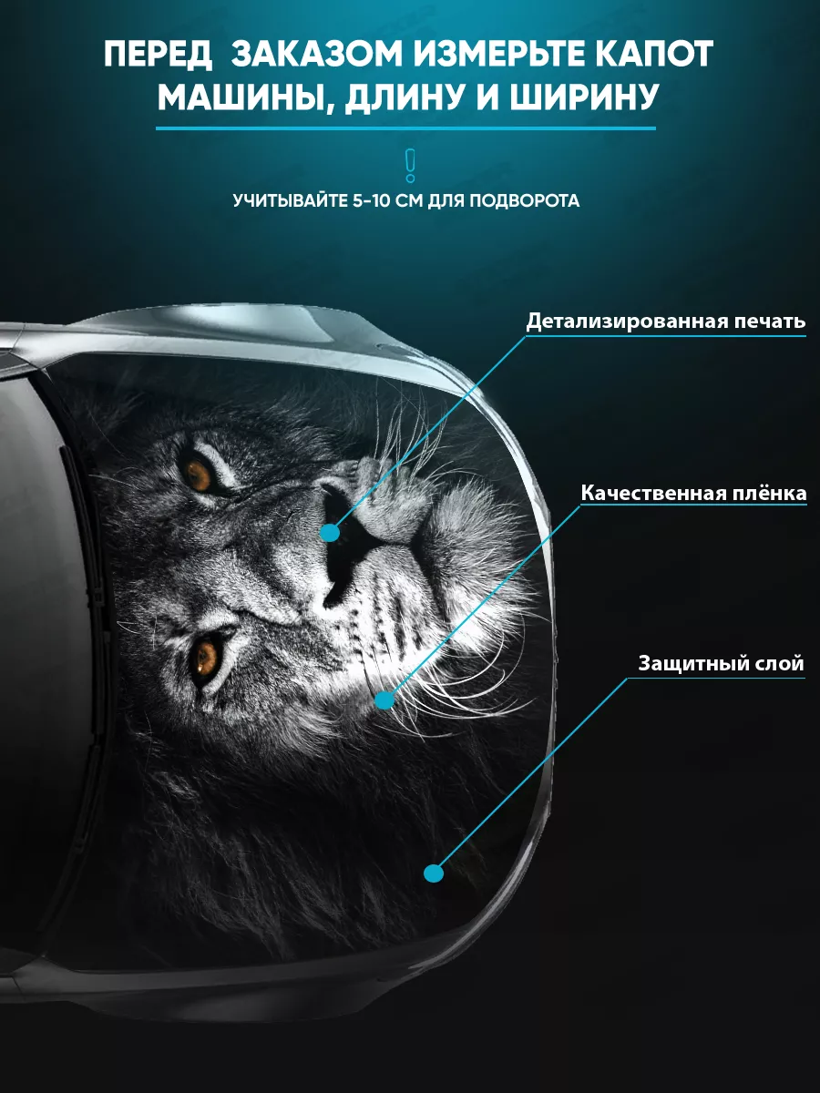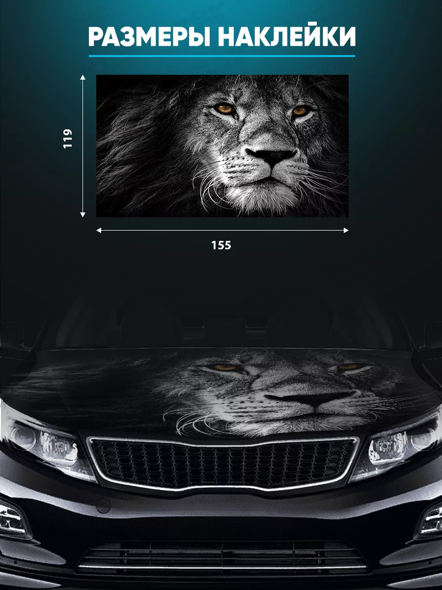 Наклейка предназначена для капота автомобиля. В коллекции Stickerboss представлены варианты с надписями, животными и пейзажами; вы можете выбрать подходящий дизайн для вашего вкуса. Товар можно подгонять под нужный размер.