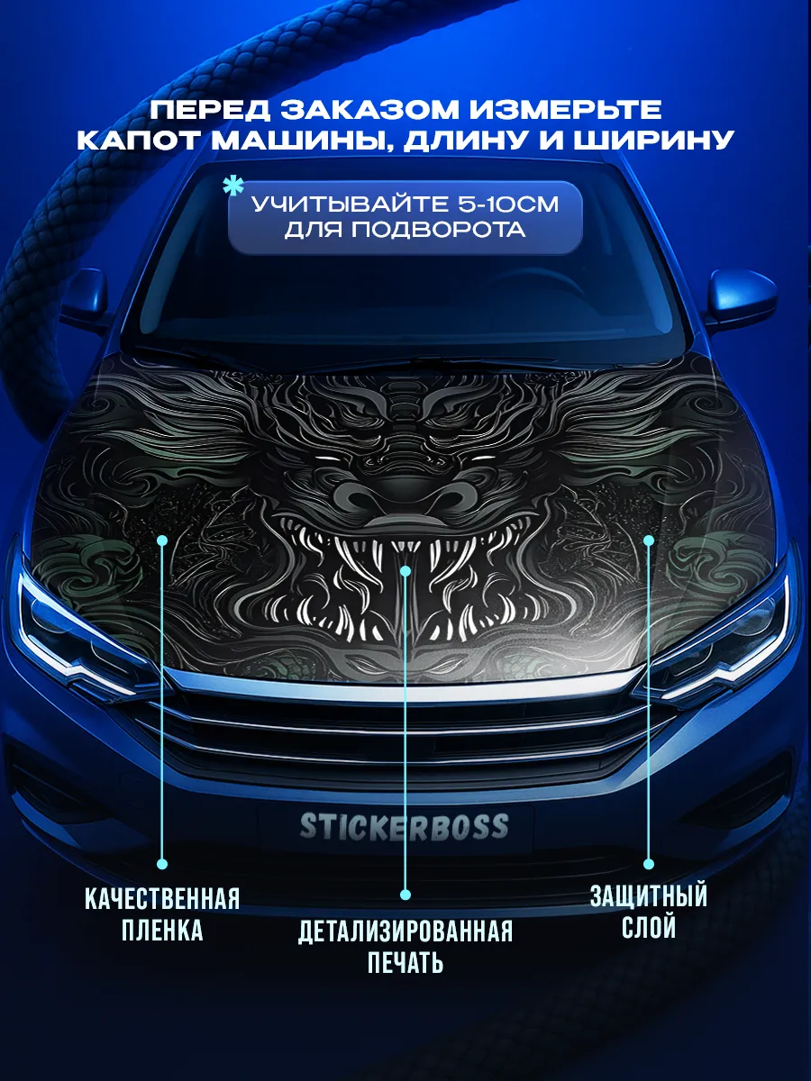 | Модель | стикер автомобильный, ламинированная пленка, защита на капот |