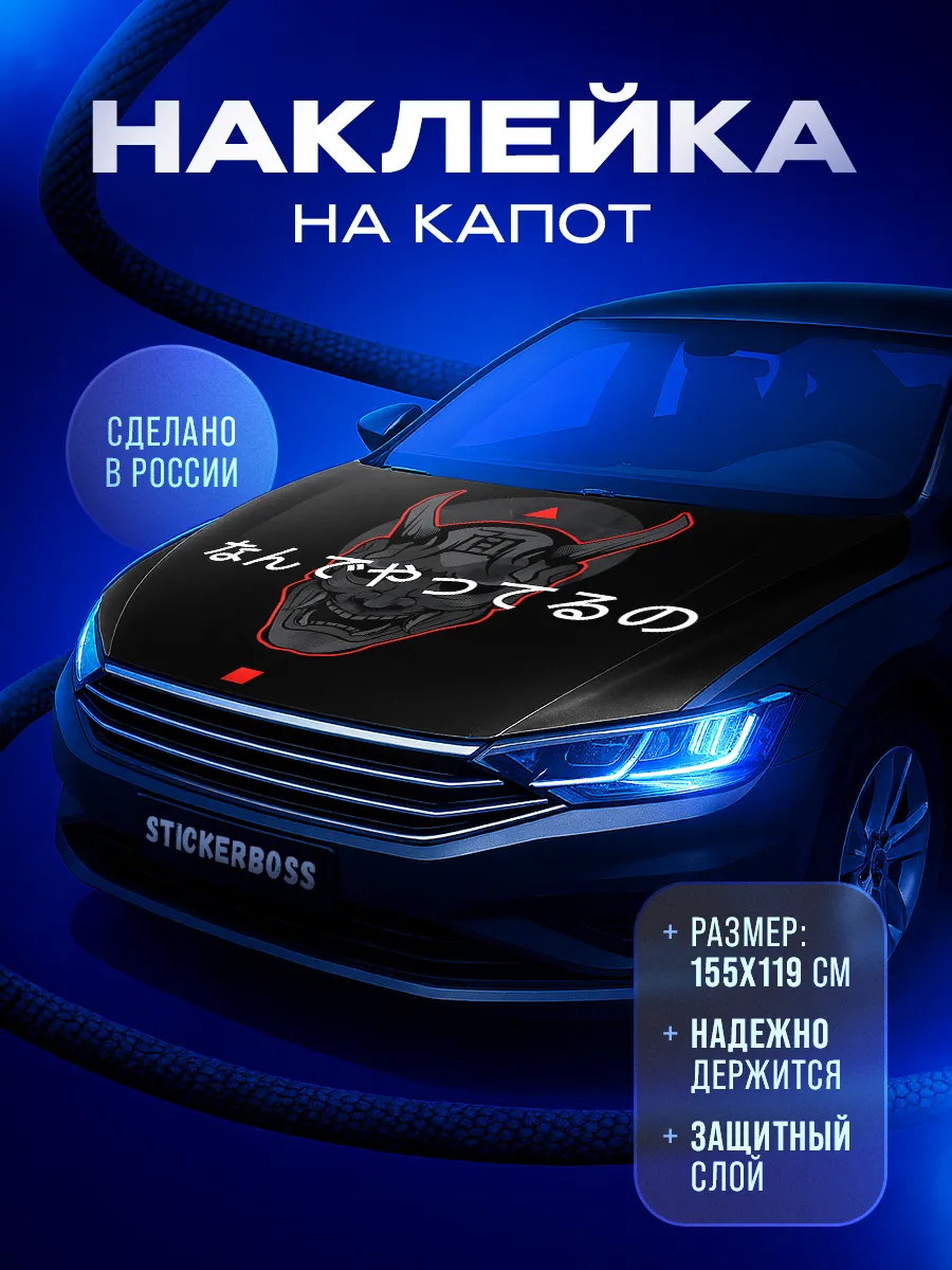 Эта наклейка на капот поможет придать вашему автомобилю выразительный и динамичный вид в японском стиле. Универсальный размер 155x119 см позволяет использовать её на капоте большинства популярных автомобилей.