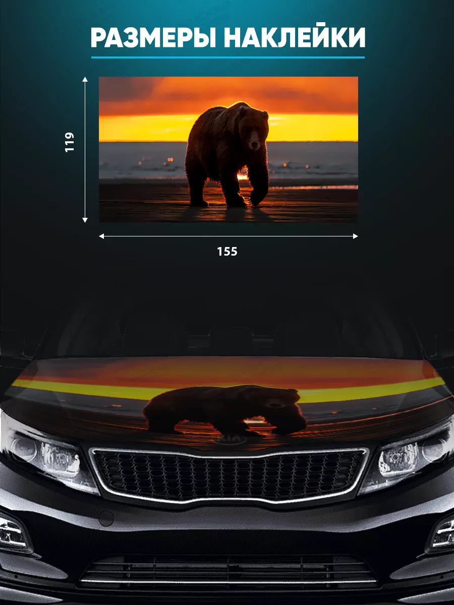 Представляем большую наклейку на капот авто с изображением бурого медведя, которая станет идеальным акцентом для вашего автомобиля
