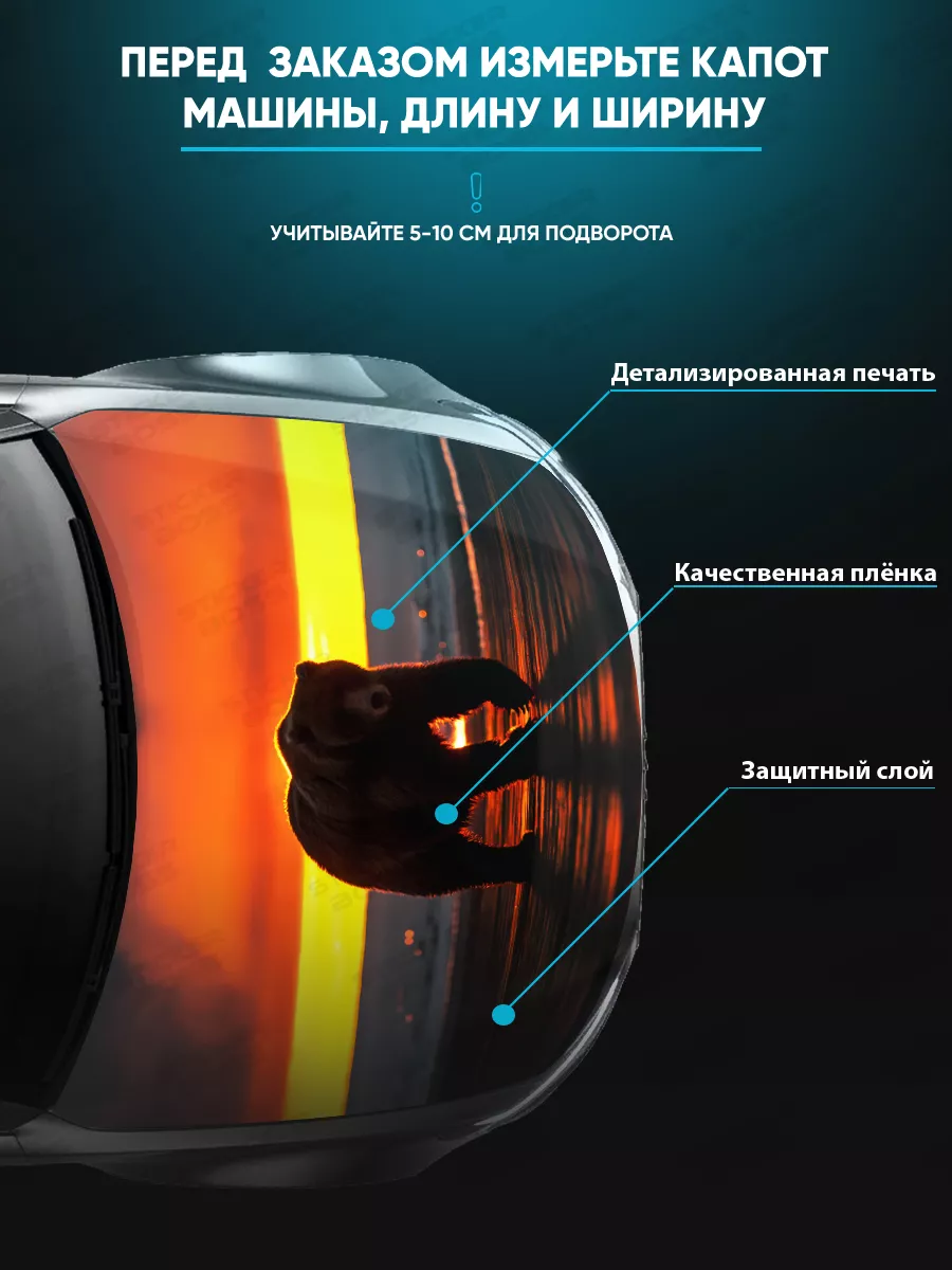 Наша наклейка на капот — крупная декоративная самоклеящаяся вставка, которая позволяет придать автомобилю индивидуальность и стиль без необходимости сложного монтажа.
