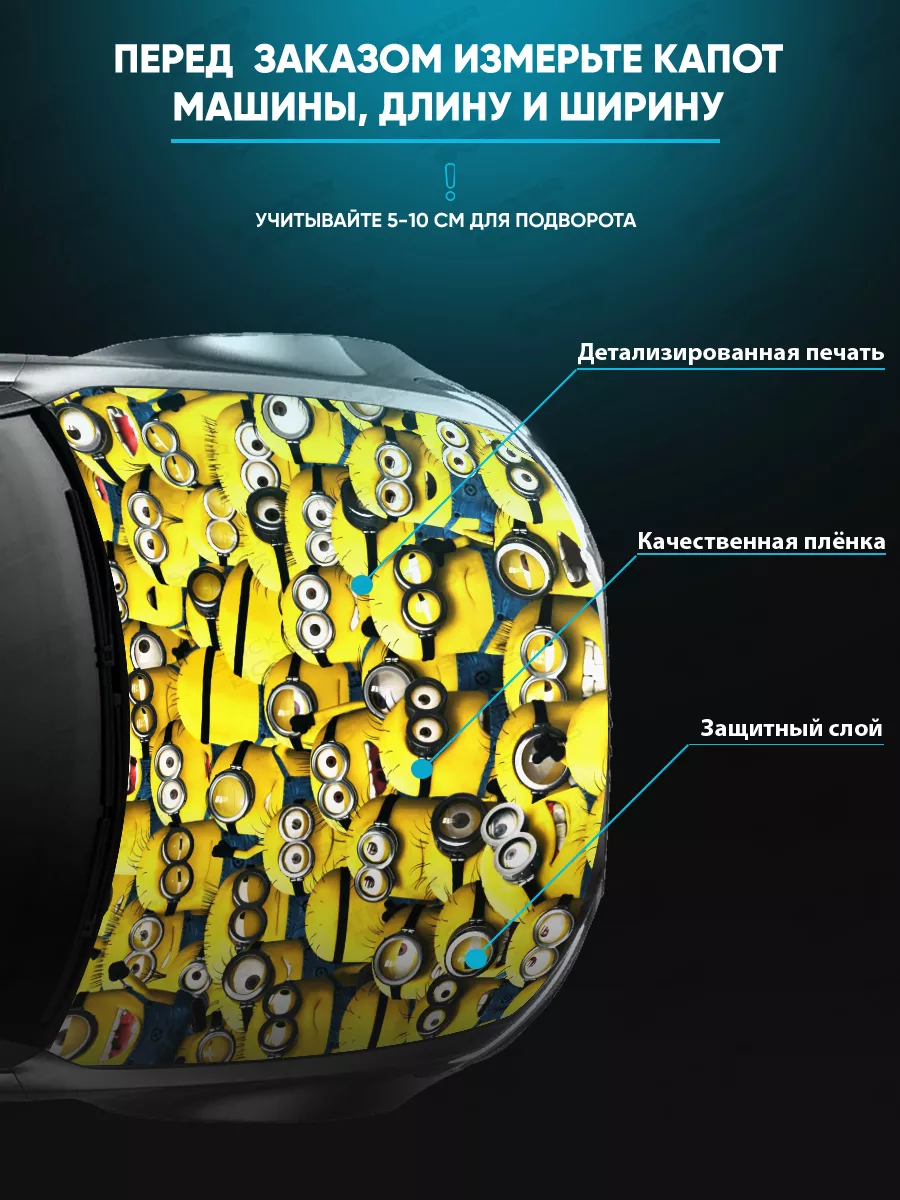 Подходит на капоты большинства популярных авто — седан, хэтчбек и универсал. При необходимости можно подрезать лист под нужный размер. Наклейка позволяет украсить автомобиль и добавить ему стиля и индивидуальности.