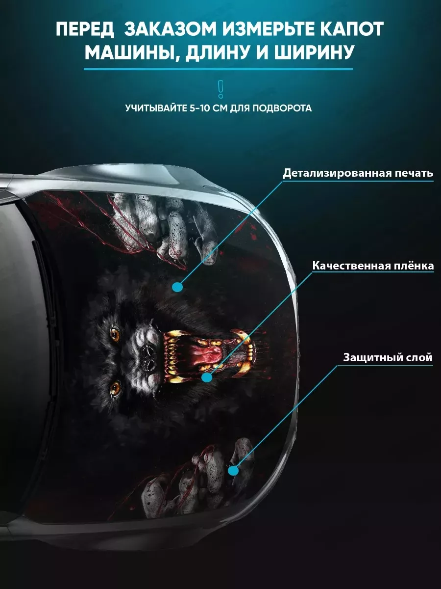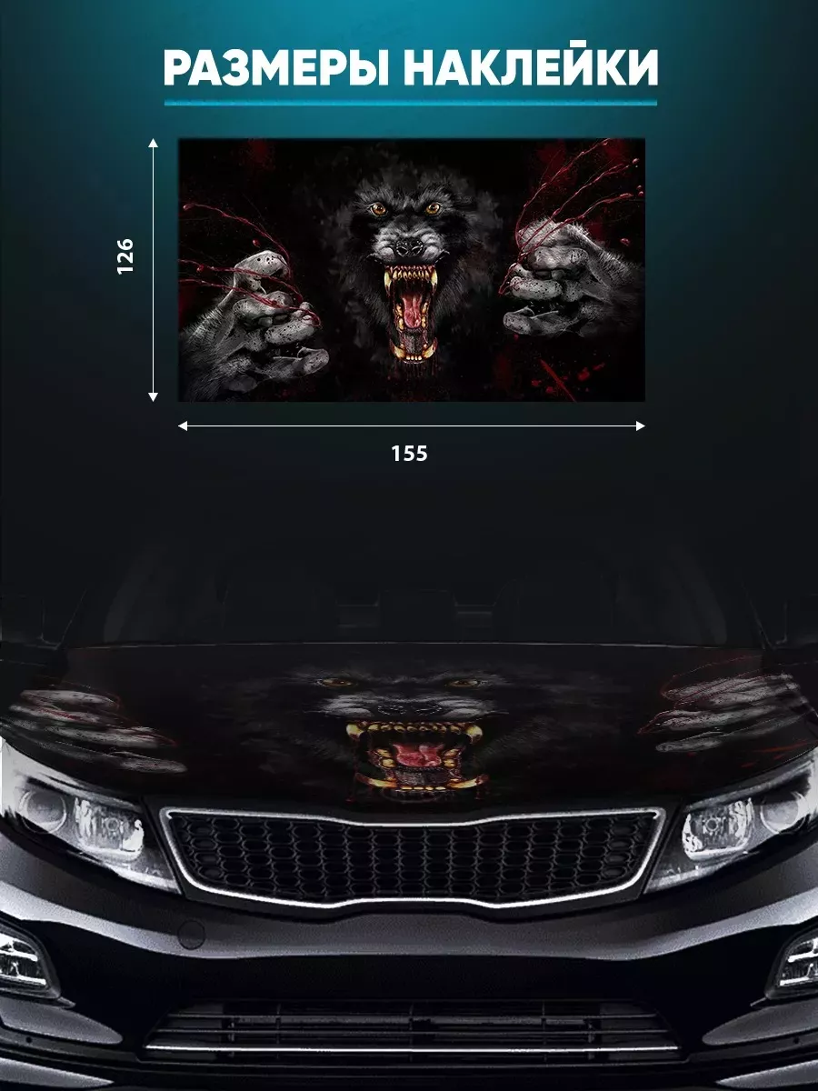 Представляем большую наклейку на капот с изображением волков, которая станет идеальным акцентом для вашего автомобиля