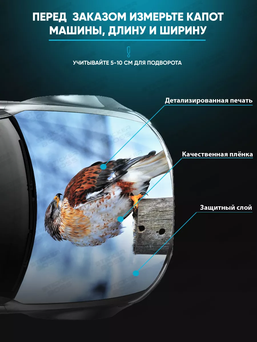 Предназначена для украшения капота автомобиля. Коллекция включает варианты с орлом и разнообразные принты: животные, аниме, флаги, горы, города и прочее. Наклейка позволяет украсить авто и подчеркнуть стиль владельца.