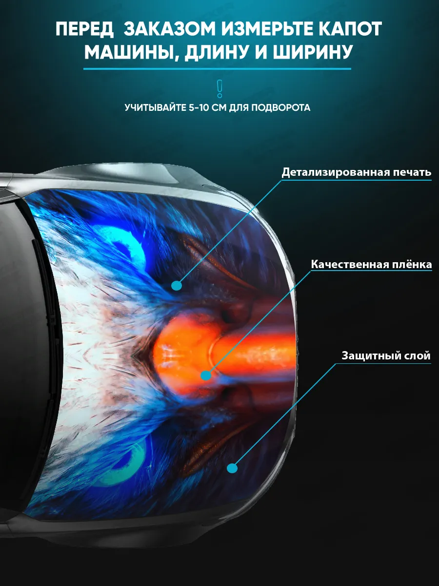 Предназначена для внешнего декора капота автомобиля. В ассортименте дизайны включают орла, 다양한 животные, аниме, флаги, горы, города и пейзажи, позволяя выбрать вариант под стиль машины.