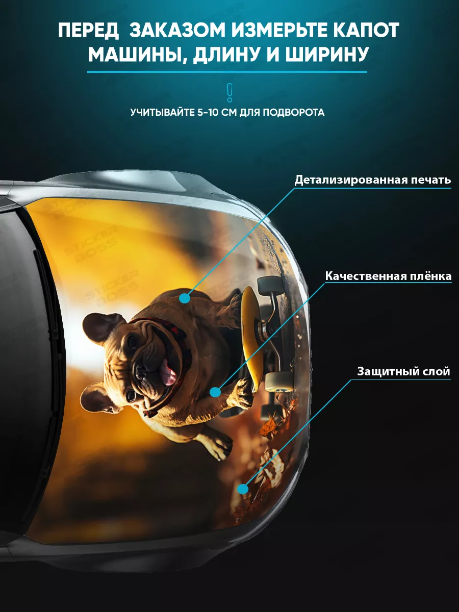 Декоративная наклейка на капот автомобиля добавляет стиль и индивидуальность. Размер 155х119 см обеспечивает универсальность и подходит для большинства моделей с возможностью подрезки под нужный размер.