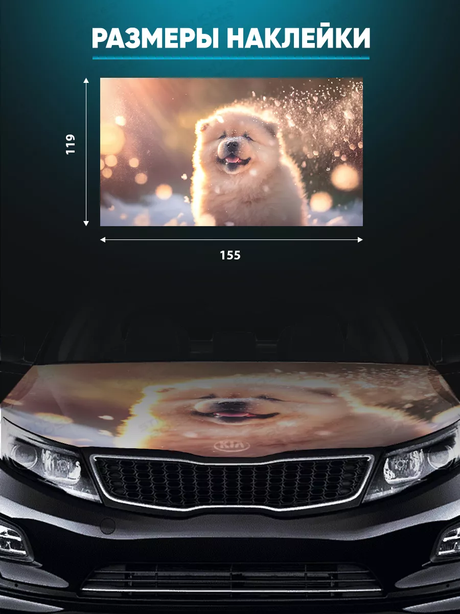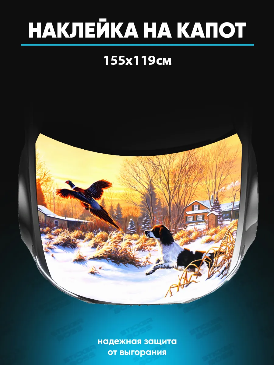 Эта наклейка на капот обеспечивает крупный декоративный акцент и стильный вид автомобиля. Размер 155х119 см делает её заметной и универсальной для разных моделей.