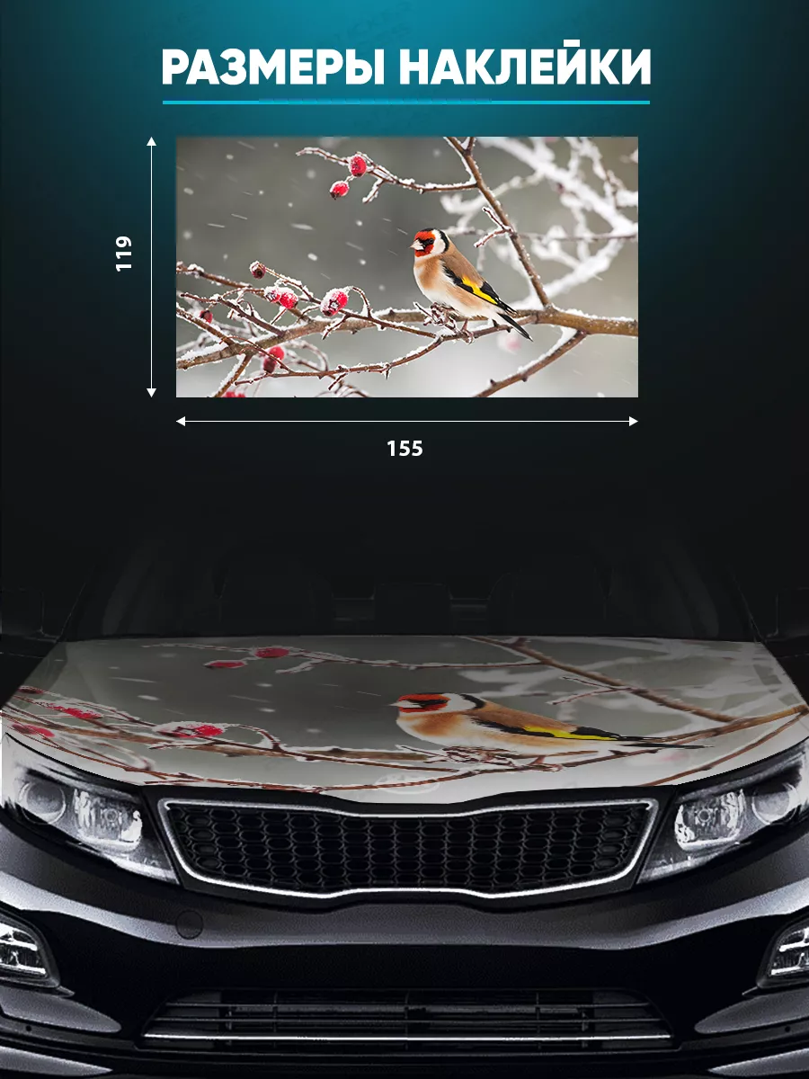 Эта наклейка создаёт яркий и стильный акцент для капота вашего автомобиля. Размер 155x119 см делает её заметной и выразительной, а качественная виниловая пленка ПВХ с ламинацией обеспечивает долговечность и защиту от выцветания.