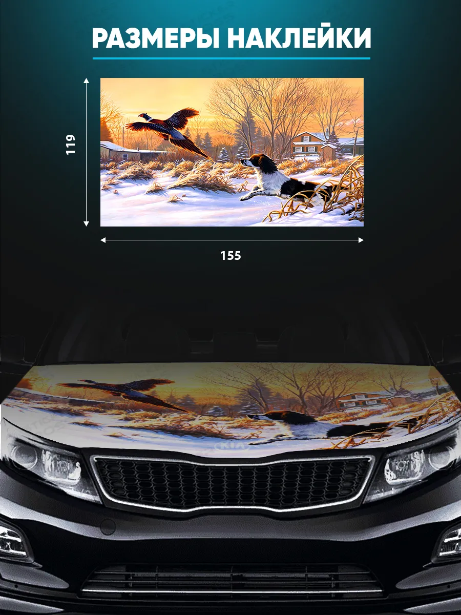 Большая наклейка на капот автомобиля размером 155х119 см позволяет придать машине выразительный стиль и индивидуальность. Лист универсальный и при необходимости подрезается под нужный капот. Изготовлена на самоклеящейся виниловой пленке ПВХ с верхним слоем ламинации, что обеспечивает надежное крепление и долговечность.