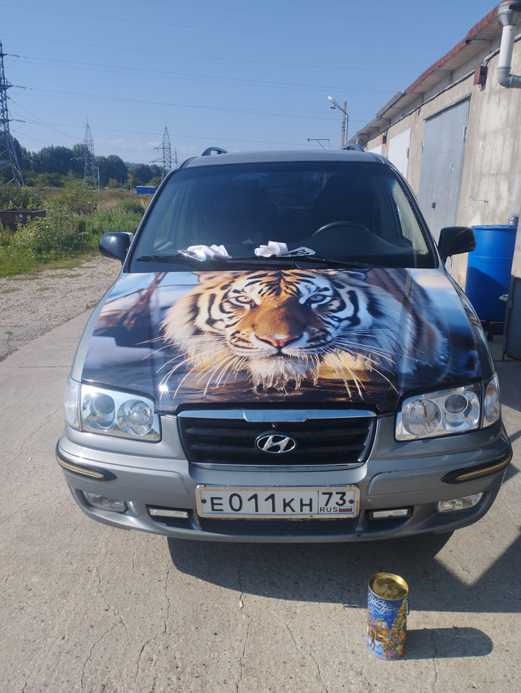 - Монтаж: наклейку можно нанести на чистую поверхность капота; легко снимается без следов