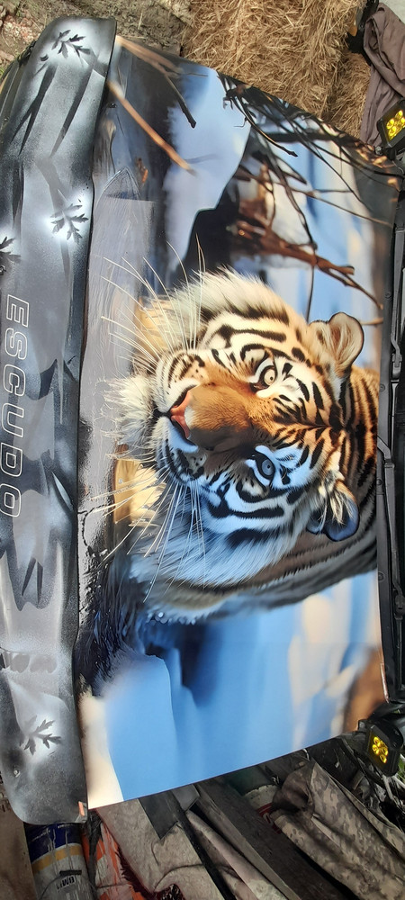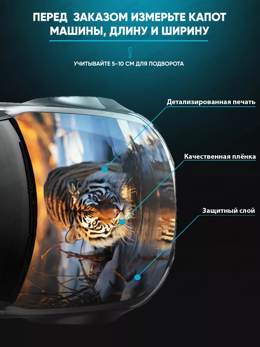 Эта наклейка на капот представляет собой крупную декоративную защиту и стиль для автомобиля. Выполнена на основе самоклеящейся виниловой пленки ПВХ с верхним слоем ламинации, что обеспечивает хорошее прилегание, защиту от выгорания и стойкость к мытью.