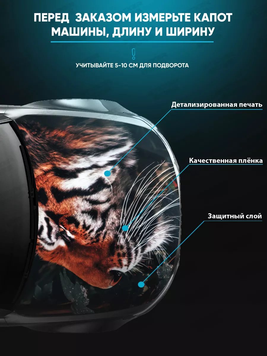Идеально подходит для капота большинства авто, добавляет стиль и индивидуальность машине.