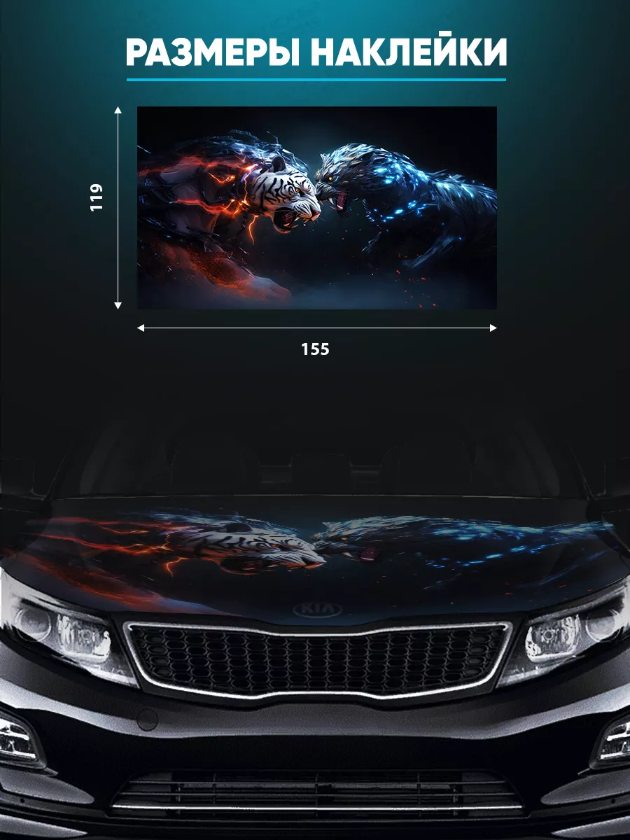 Эта наклейка на капот предназначена для внешнего декоративного тюнинга автомобиля. Размер 155х119 см, универсальный и подходит для большинства седанов, хэтчбеков и универсалов. При необходимости можно подрезать лист под нужный размер.