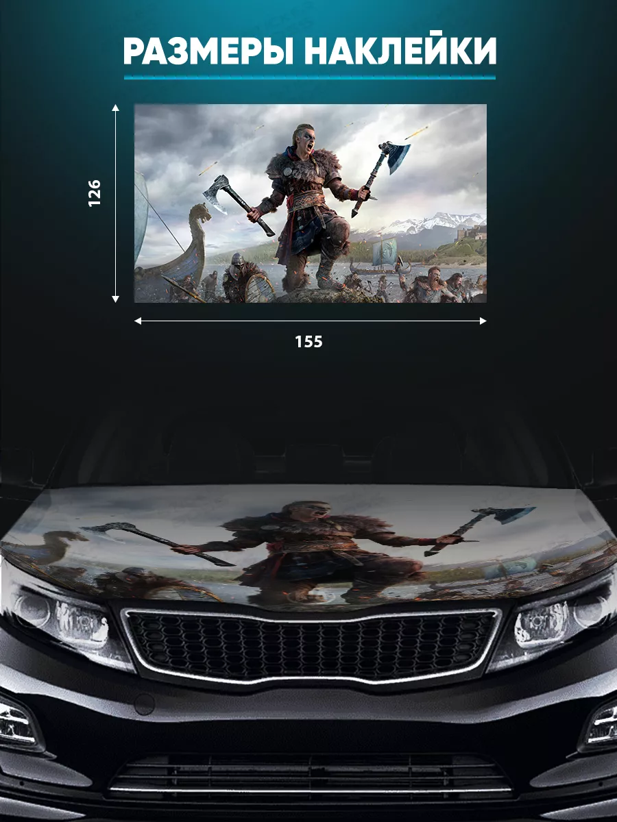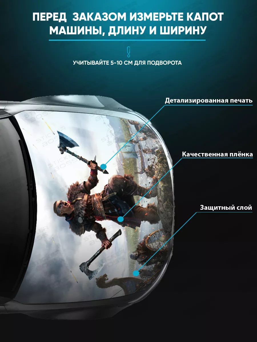 Размещение наклейки: капот автомобиля. В коллекции представлены варианты с надписями, животными и пейзажами; выберите подходящий дизайн и создайте индивидуальный стиль вашего авто.