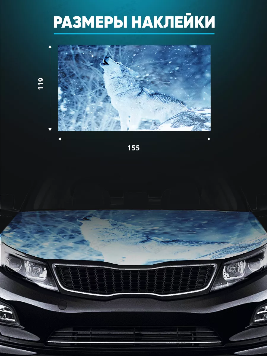 Представляем большую наклейку на капот с изображением волков, которая станет идеальным акцентом для вашего автомобиля