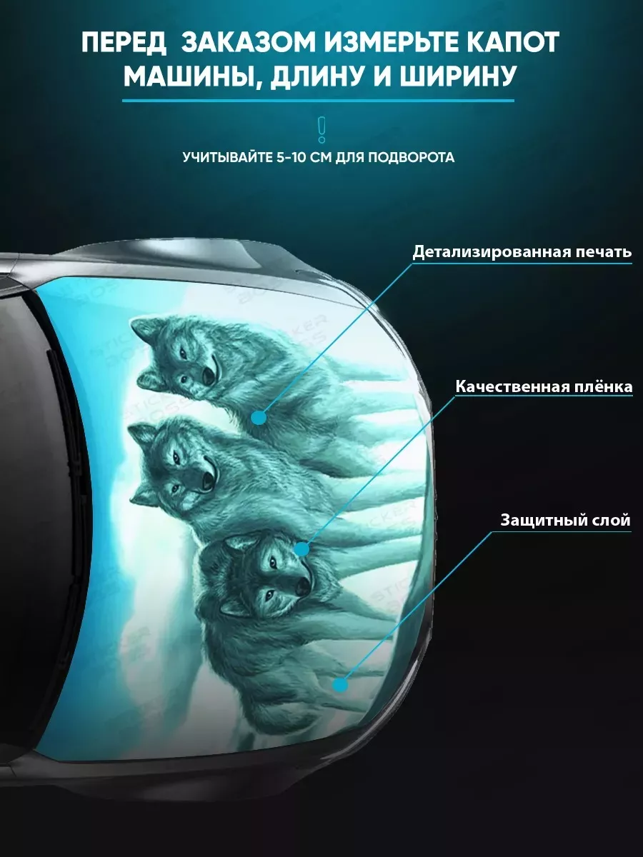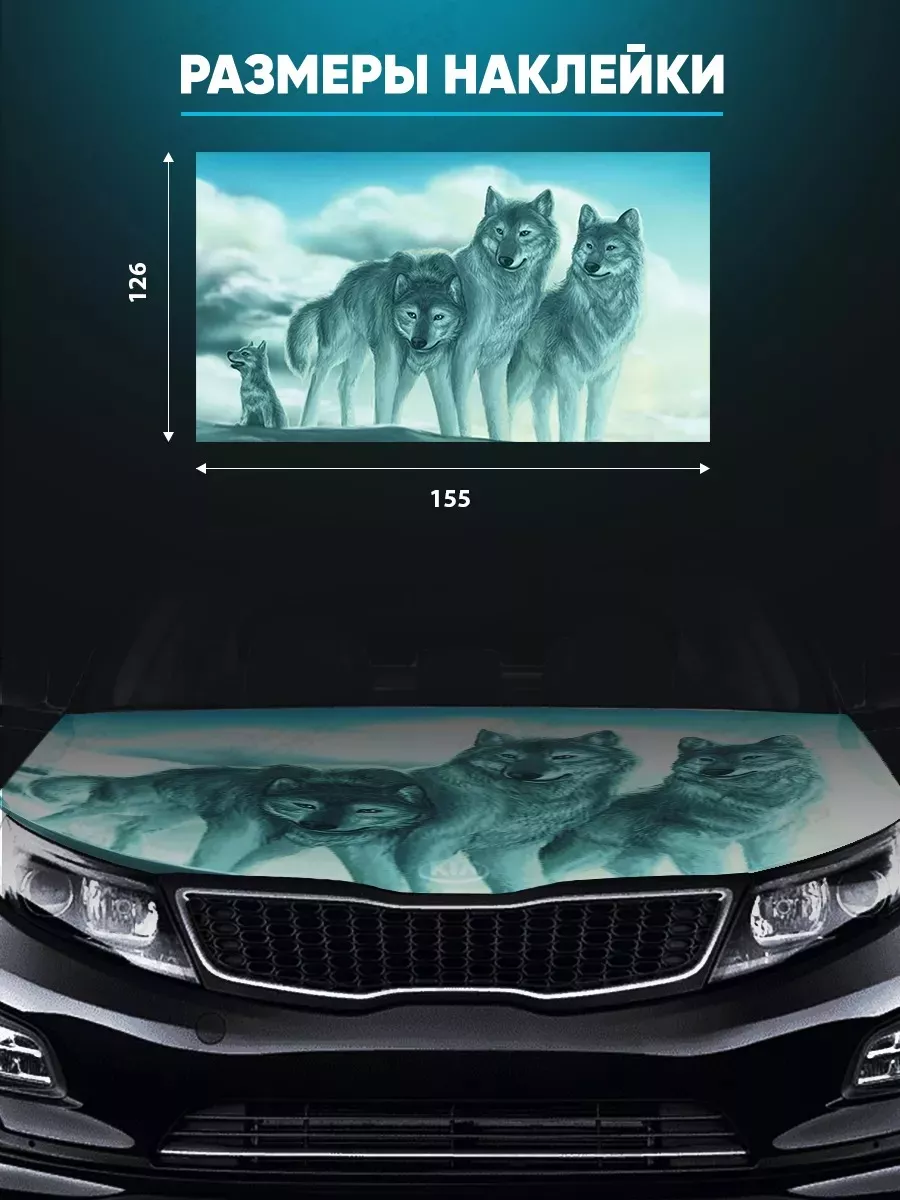 Представляем большую наклейку на капот с изображением волков, которая станет идеальным акцентом для вашего автомобиля