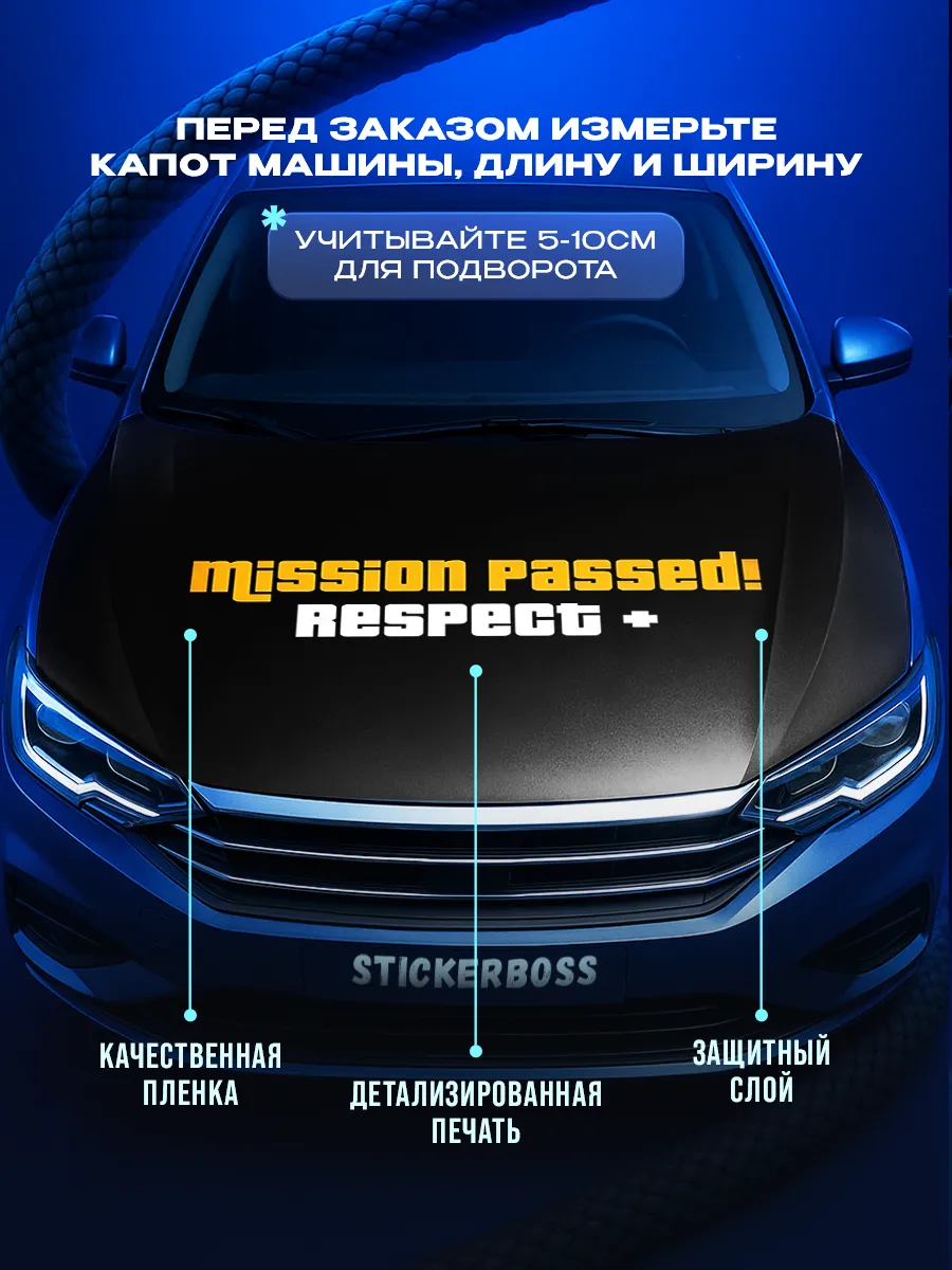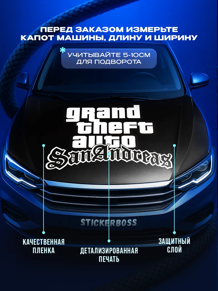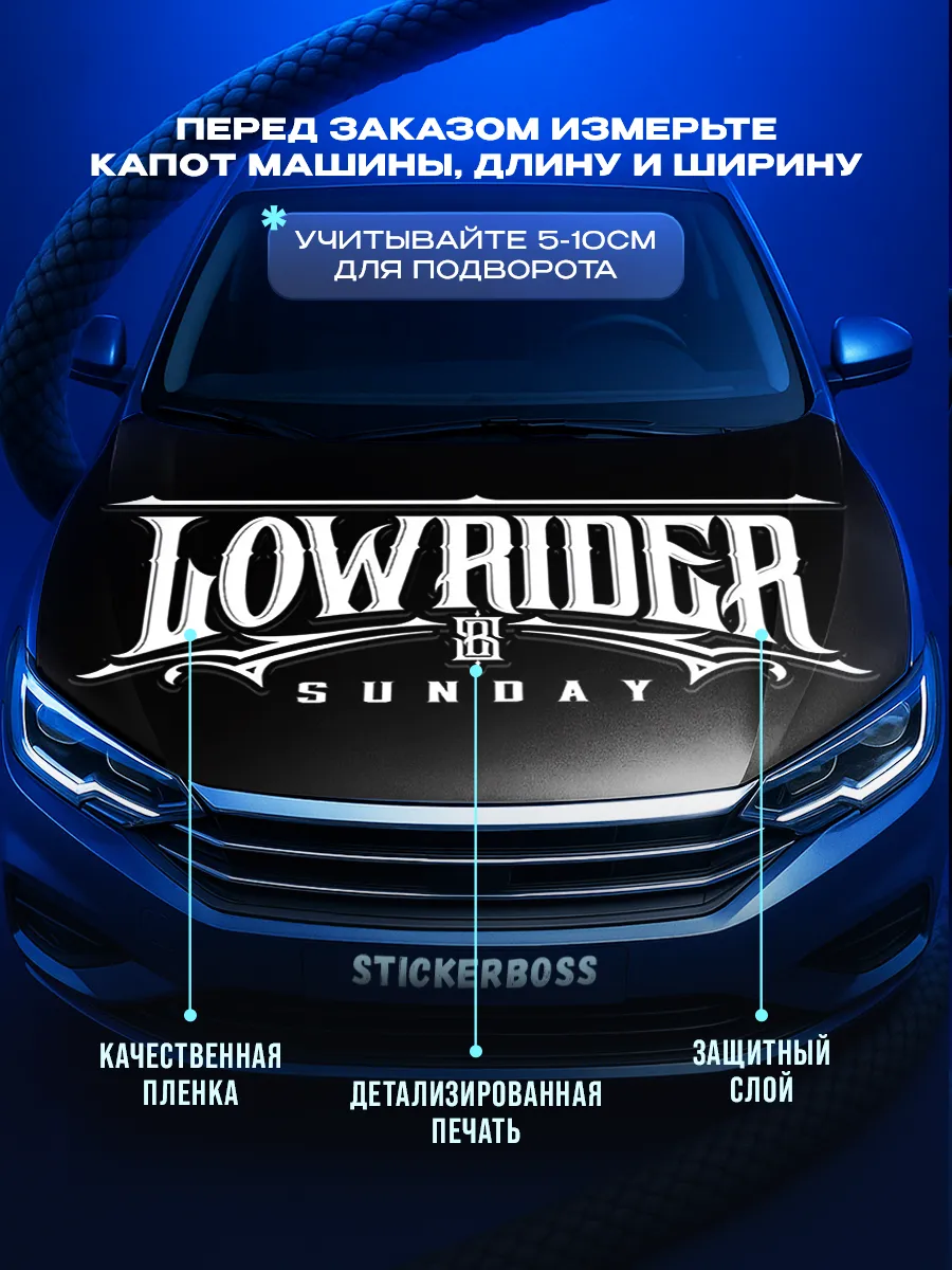 Наклейка на капот авто 155х119 см – большая декоративная наклейка, которая позволяет придать автомобилю стиль и индивидуальность. Размер универсальный и подходит для большинства моделей седан, хэтчбек и универсал. По желанию можно подрезать лист под нужный размер. Наклейка изготовлена на качественной самоклеящейся виниловой пленке ПВХ, устойчивой к мойке, влаге и агрессивным погодным условиям, с верхним слоем ламинации, который защищает от выгорания на солнце. При желании легко снимается, не оставляя следов. В коллекции множество вариантов: принты с надписями, героями известных кинофильмов, динамичные изображения львов, тигров, волков, медведей, леопардов, собак, лошадей, и прочих животных, принты в стиле аниме, флаги России, флаги известных футбольных клубов, горы, города, живописные пейзажи и многое другое. Наклейка позволяет украсить автомобиль и добавить ему стиля и индивидуальности, декорировать под ваши взгляды на дизайн машины. Товар упаковывается в специальную защитную тубу, что обеспечивает сохранность во время доставки и радует яркими красками и высоким качеством наших стикеров. Они также станут отличным подарком на новый год, день рождения, 8 марта и 23 февраля. Сделайте повседневную езду на автомобиле ярче вместе с продукцией бренда Stickerboss!