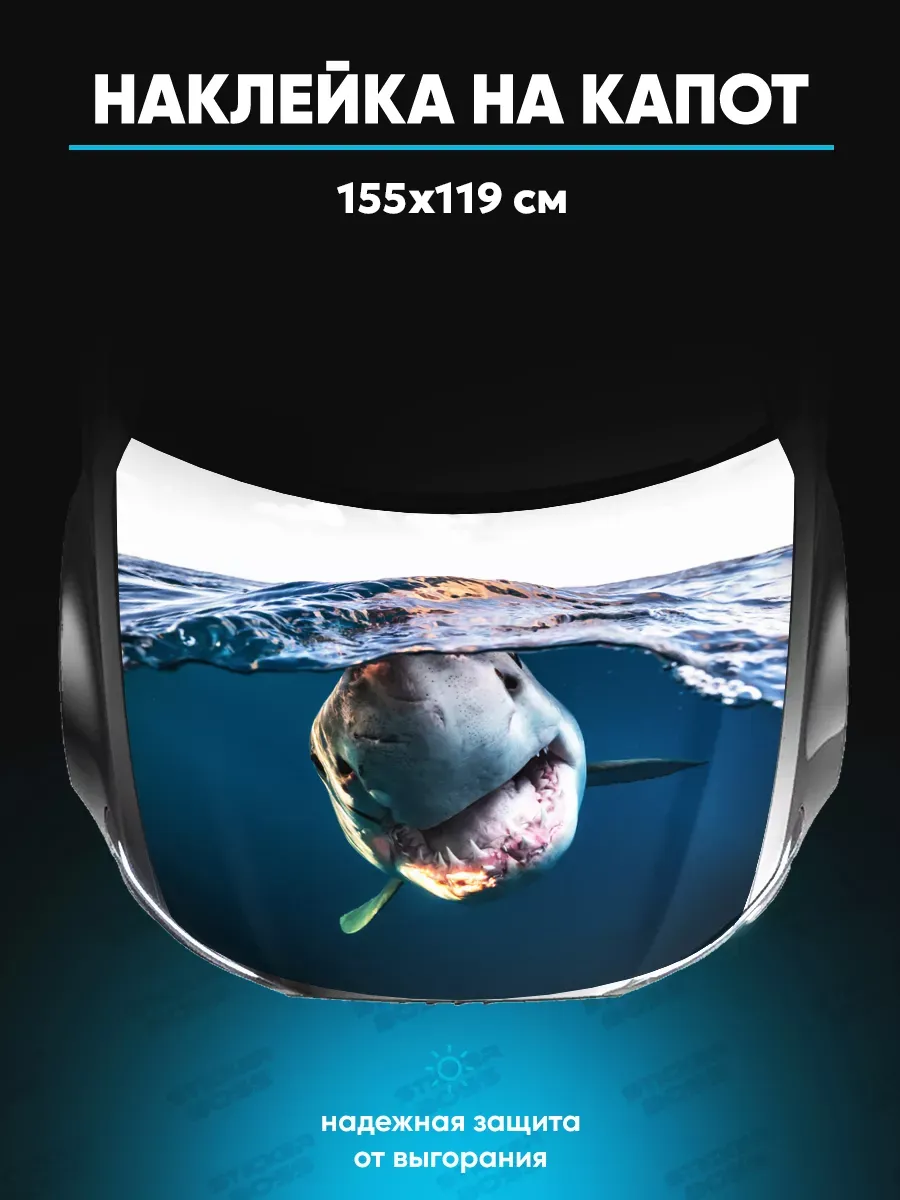 Представляем большую наклейку на капот авто с акулой, которая станет идеальным акцентом для вашего автомобиля