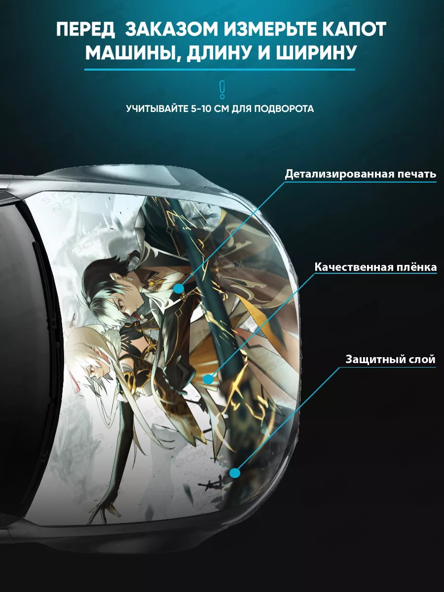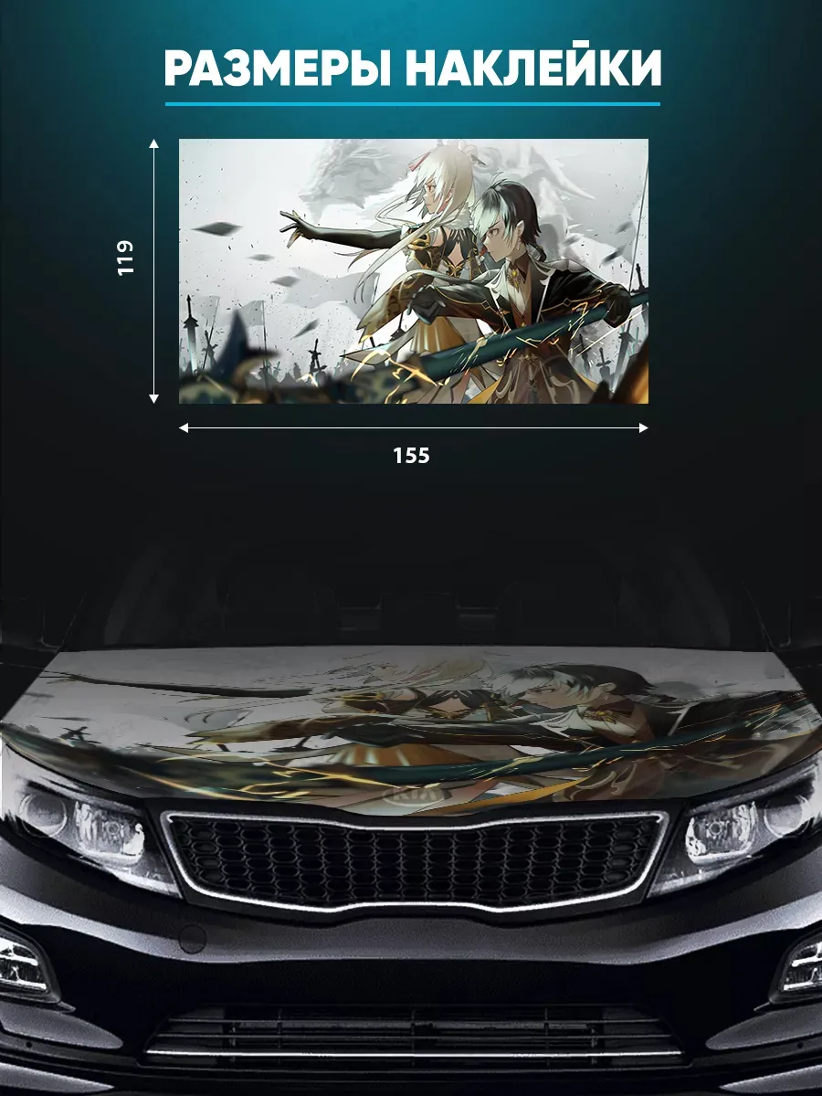 Преобразите внешний вид вашего автомобиля с помощью уникальной наклейки на капот с аниме девушками! Эта большая наклейка размером 155х119 см идеально подойдет для большинства популярных моделей, будь то седан, хэтчбек или универсал