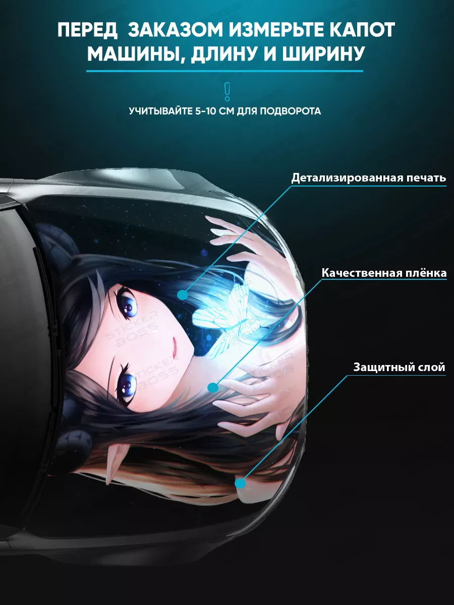 Преобразите внешний вид вашего автомобиля с помощью уникальной наклейки на капот с аниме девушками! Эта большая наклейка размером 155х119 см идеально подойдет для большинства популярных моделей, будь то седан, хэтчбек или универсал