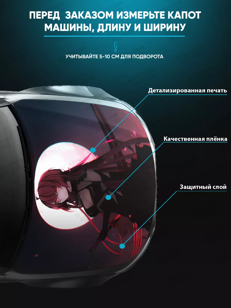 Преобразите внешний вид вашего автомобиля с помощью уникальной наклейки на капот с аниме девушками! Эта большая наклейка размером 155х119 см идеально подойдет для большинства популярных моделей, будь то седан, хэтчбек или универсал