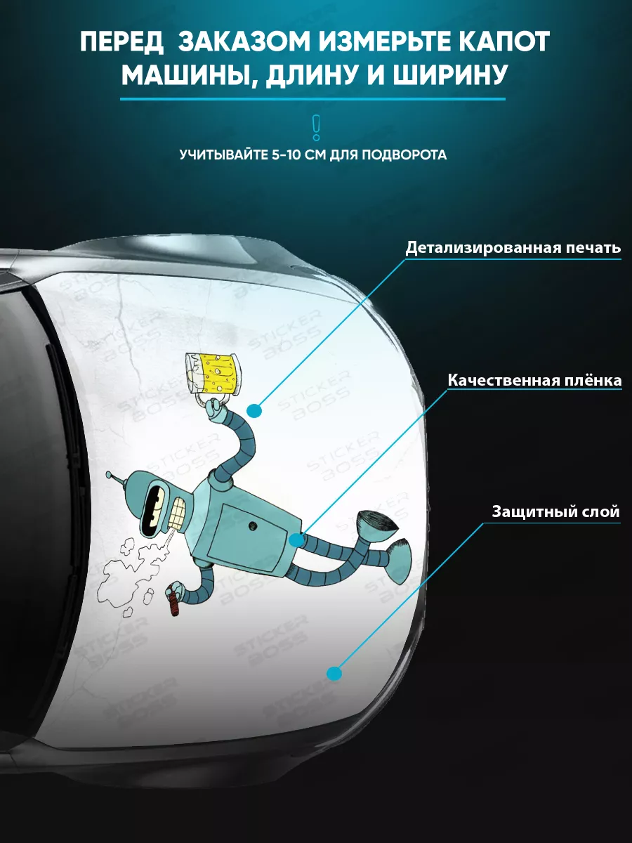 Декоративная наклейка предназначена для украшения капота автомобиля и придания ему индивидуального стиля. Широкий выбор сюжетов — от спортивных принтов до изображений животных, городских пейзажей и флагов.