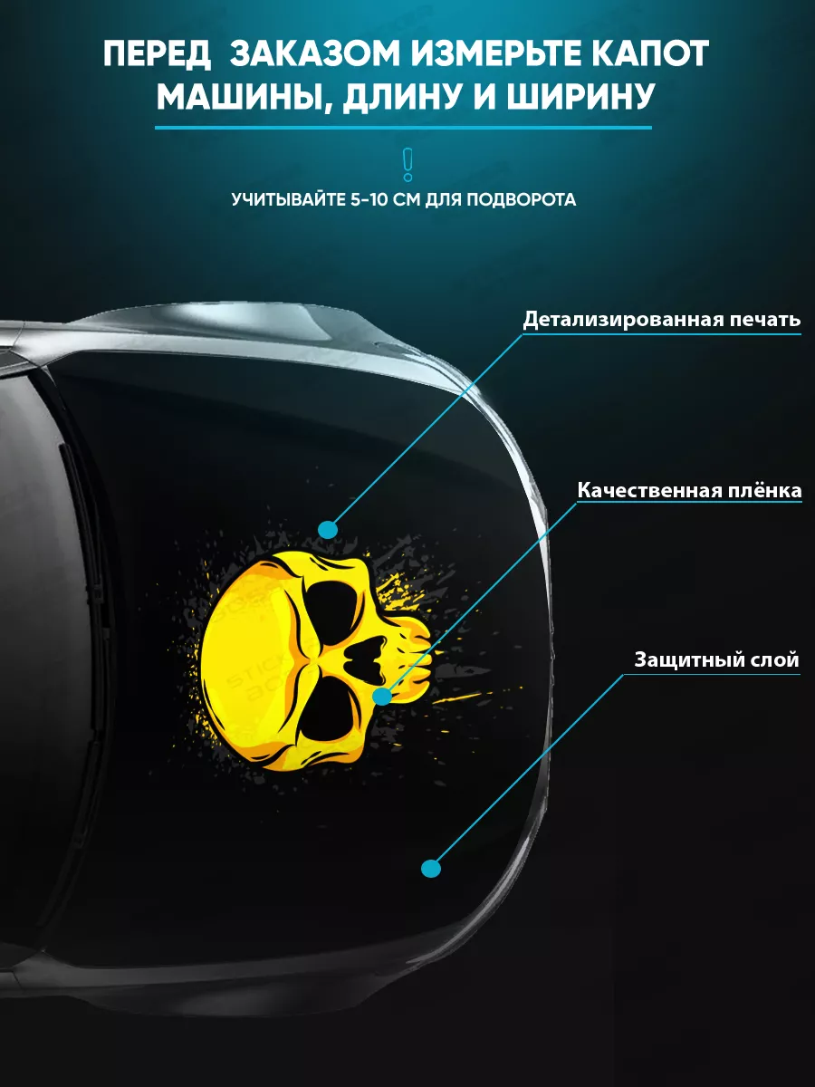 Подходит для украшения капота автомобилей разных типов: седан, хэтчбек, универсал. В коллекции доступны варианты с разнообразными принтами: надписи, животные, флаги, горы, города и пейзажи.