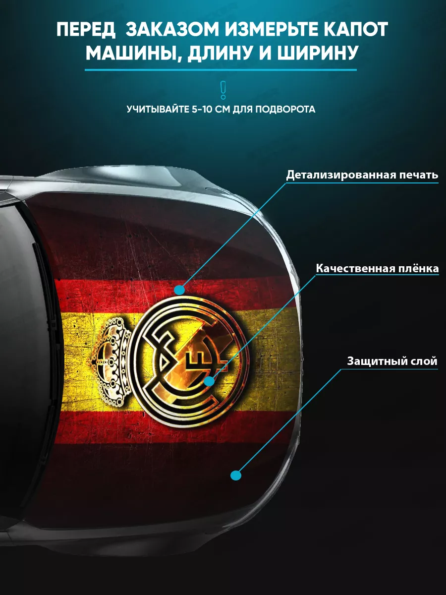 \nИдеально подходит для украшения капота любых легковых автомобилей; может подрезаться под нужный размер; подходит для седанов, хэтчбеков и универсалов.