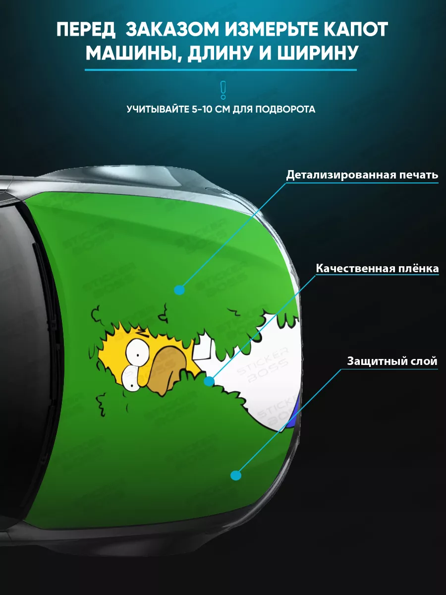 Эта наклейка на капот представляет декоративное украшение автомобиля, выполненное из прочной самоклеящейся виниловой пленки ПВХ. Универсальный размер 155х119 см позволяет покрыть капот большинства моделей: седан, хэтчбек и универсал. Поверхность защищена ламинацией, что обеспечивает стойкость к солнечному свету, влаге и мытью. Наклейка не боится пыли и атмосферных условий, сохраняет цвет и детали. По желанию можно подрезать лист под нужный размер. Легко снимается без следов, если понадобится сменить дизайн. В коллекции Stickerboss представлен широкий выбор вариантов: герои известных фильмов, животные, флаги, города и пейзажи. Товар упаковывается в защитную тубу для надёжной доставки.