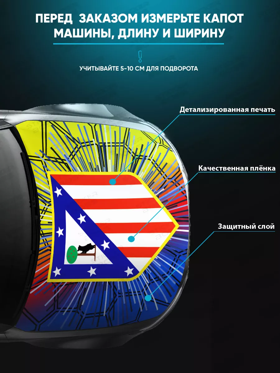 Большая наклейка на капот авто размера 155х119 см позволит придать автомобилю яркий стиль и индивидуальность. Изготовление из прочной самоклеящейся виниловой пленки ПВХ обеспечивает долговечность и устойчивость к погоде и мытью.