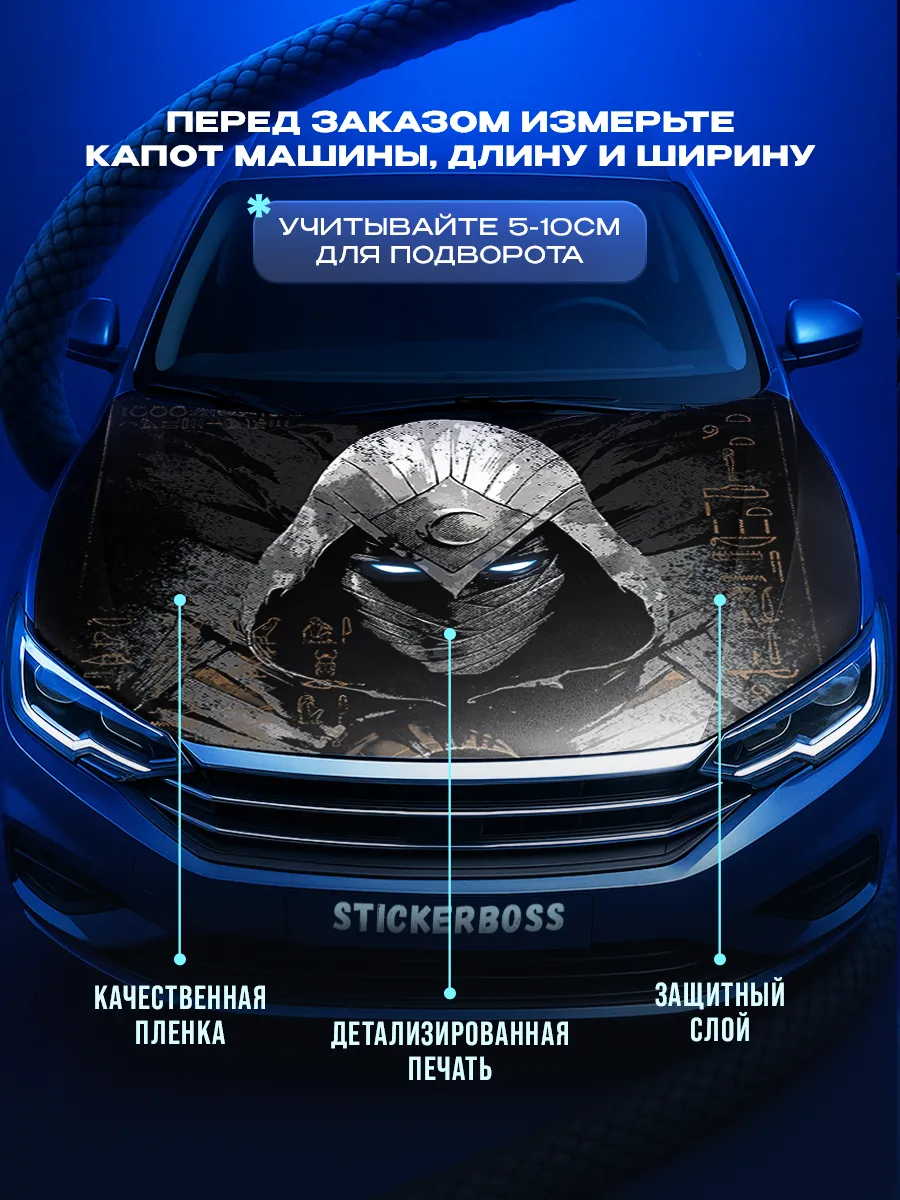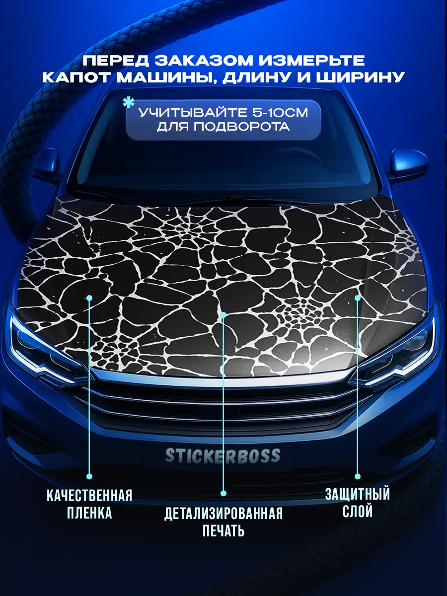 Большая наклейка на капот — стильное решение для индивидуализации внешнего вида автомобиля. Наклейка изготовлена из высококачественной самоклеющейся виниловой пленки ПВХ и рассчитана на длительную эксплуатацию в разных погодных условиях.